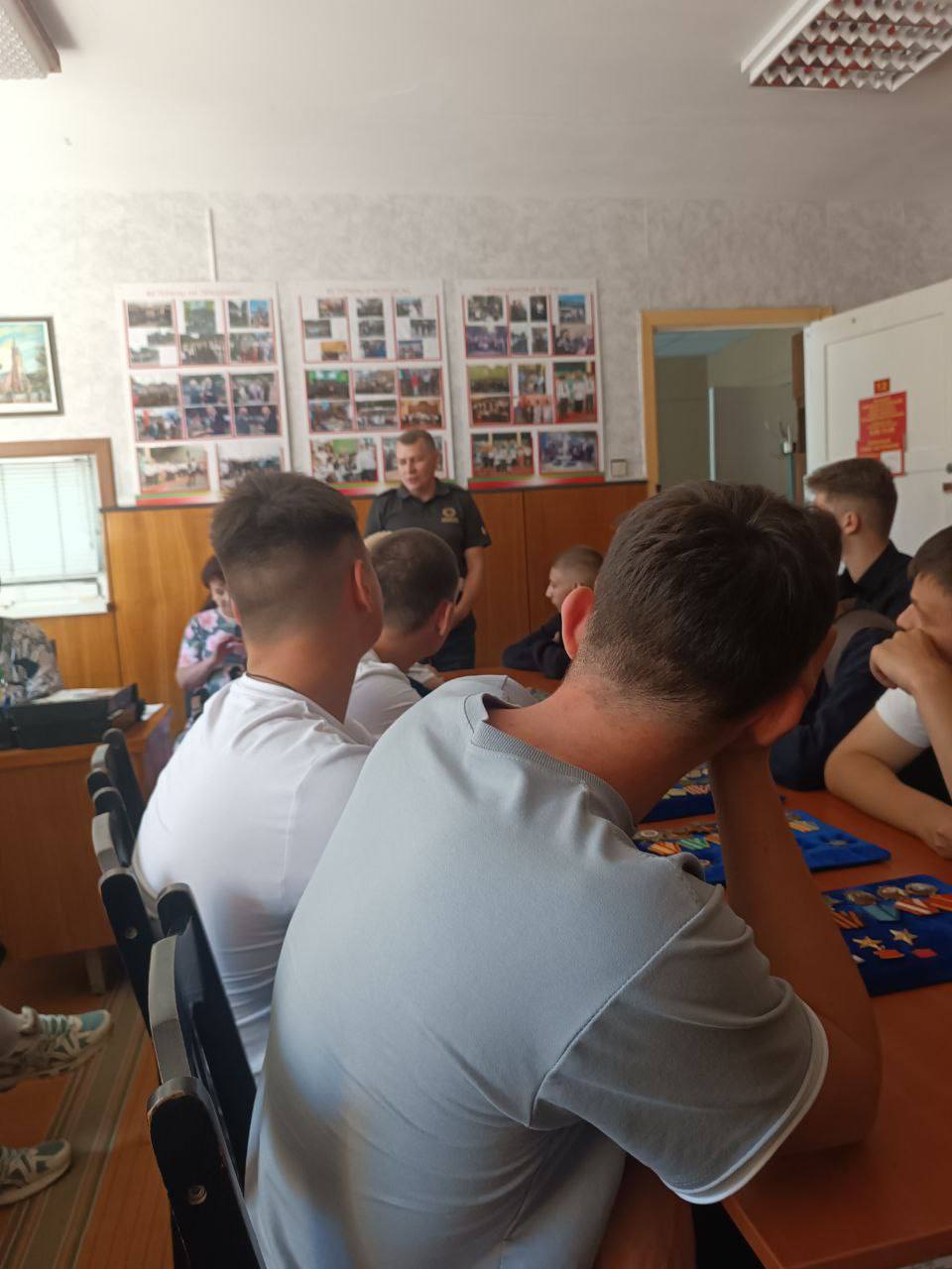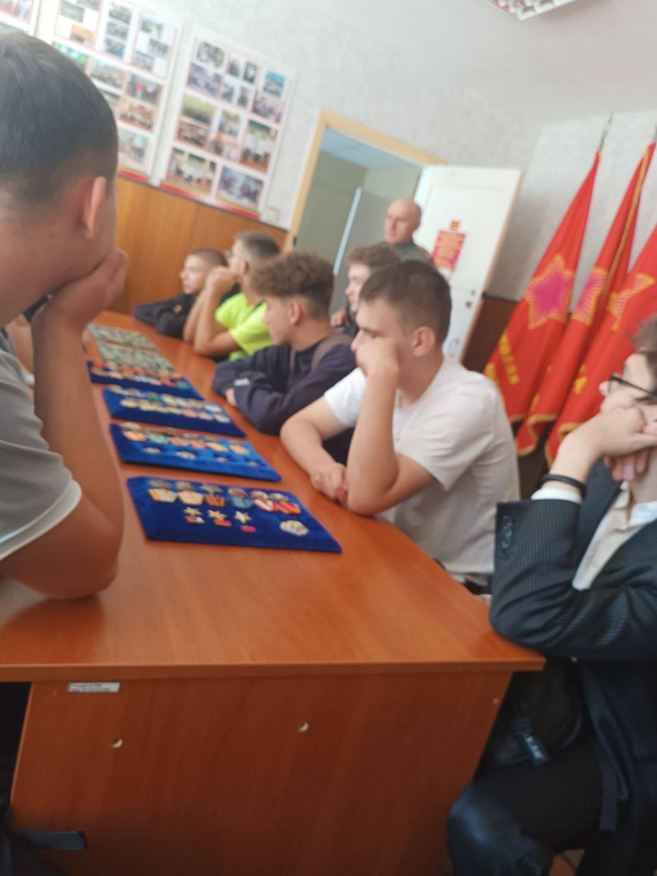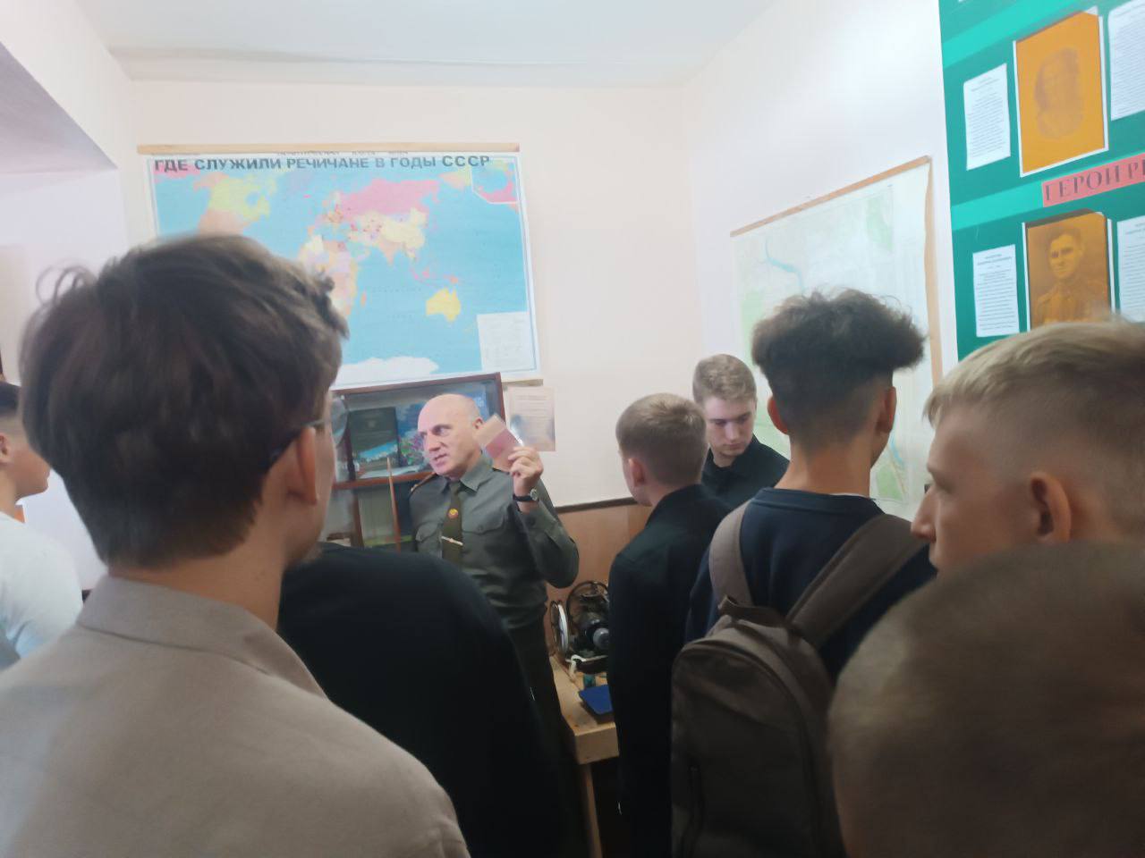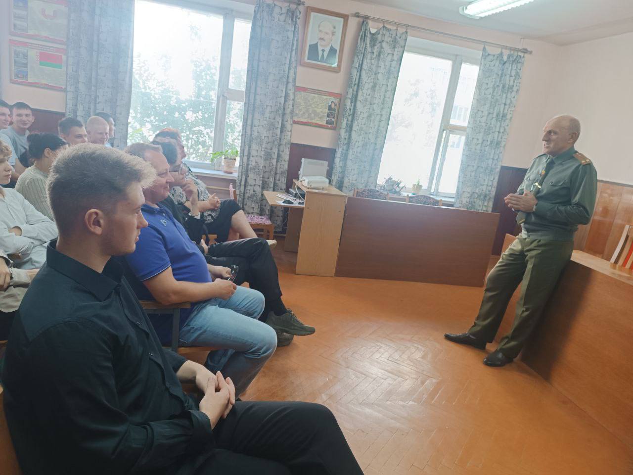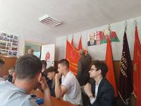 С целью увековечивания памяти о событиях тех лет в военном комиссариате Речицкого и Лоевского районом прошел круглый стол "Во имя павших и живых", в ходе которого председатель Речицкого союза ветеранов Щербин А.И. рассказал интересные факты об освобождении Гомельской области, о геноциде мирного населения и уничтожении военнопленных. Была проведена экскурсия по музею воинской славы, находящемся в военкомате. Продолжил беседу член совета ветеранов Ахремчук А.И., который рассказал исторические факты о службе разведки и контрразведки в период Второй мировой войны, деятельности общественного объединения совета ветеранов и показал знамёна "Речицких" частей. Далее слово взял военный комиссар Речицкого и Лоевского района, рассказав о фактах подписания мирного договора с Японией, и ответил на вопросы присутствующих о службе в вооруженные силах в том числе по контракту, а также о поступлении в воинские ВУЗы.