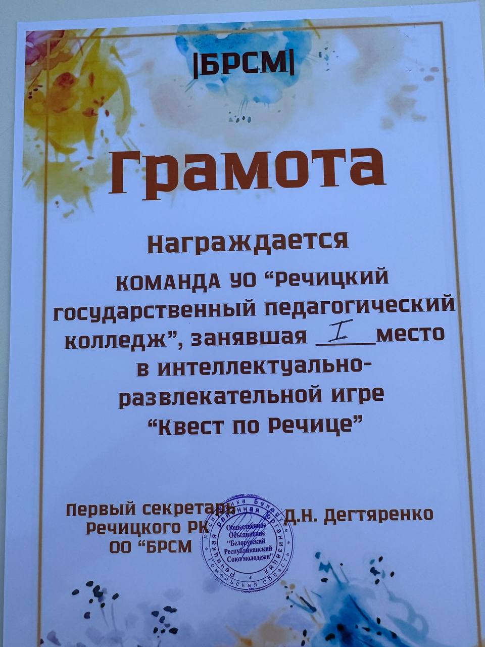 Все команды были награждены грамотами и приятным подарком от ОО "БРСМ"