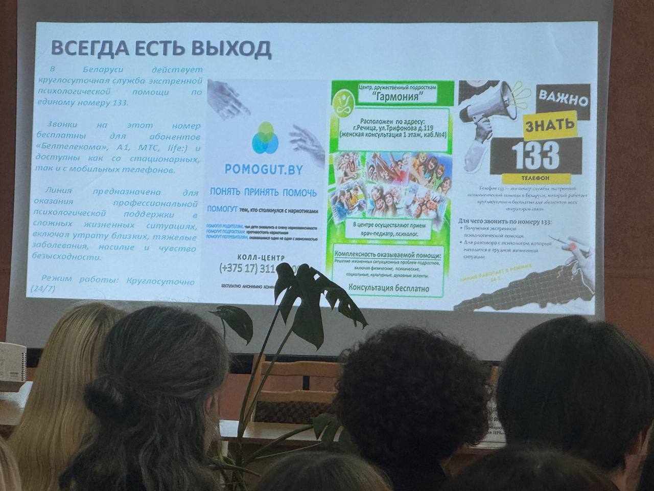 Сотрудник КДН рассказала, куда учащиеся могут обратиться в случае различных жизненных трудностей (сайт POMOGUT.by, Центр дружественный подросткам "Гармония", администрация и педагоги колледжа).