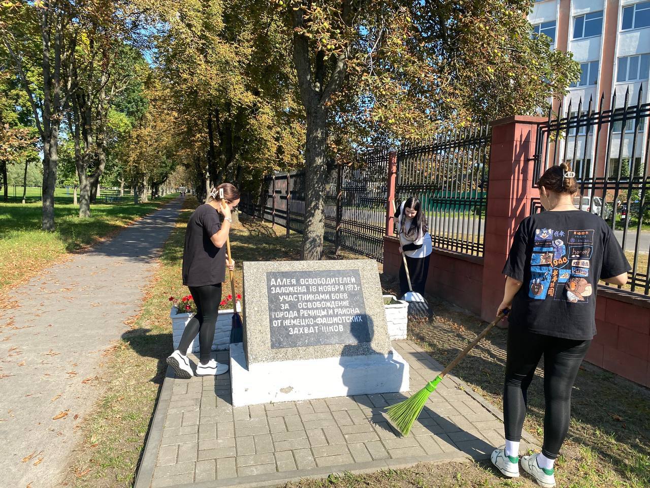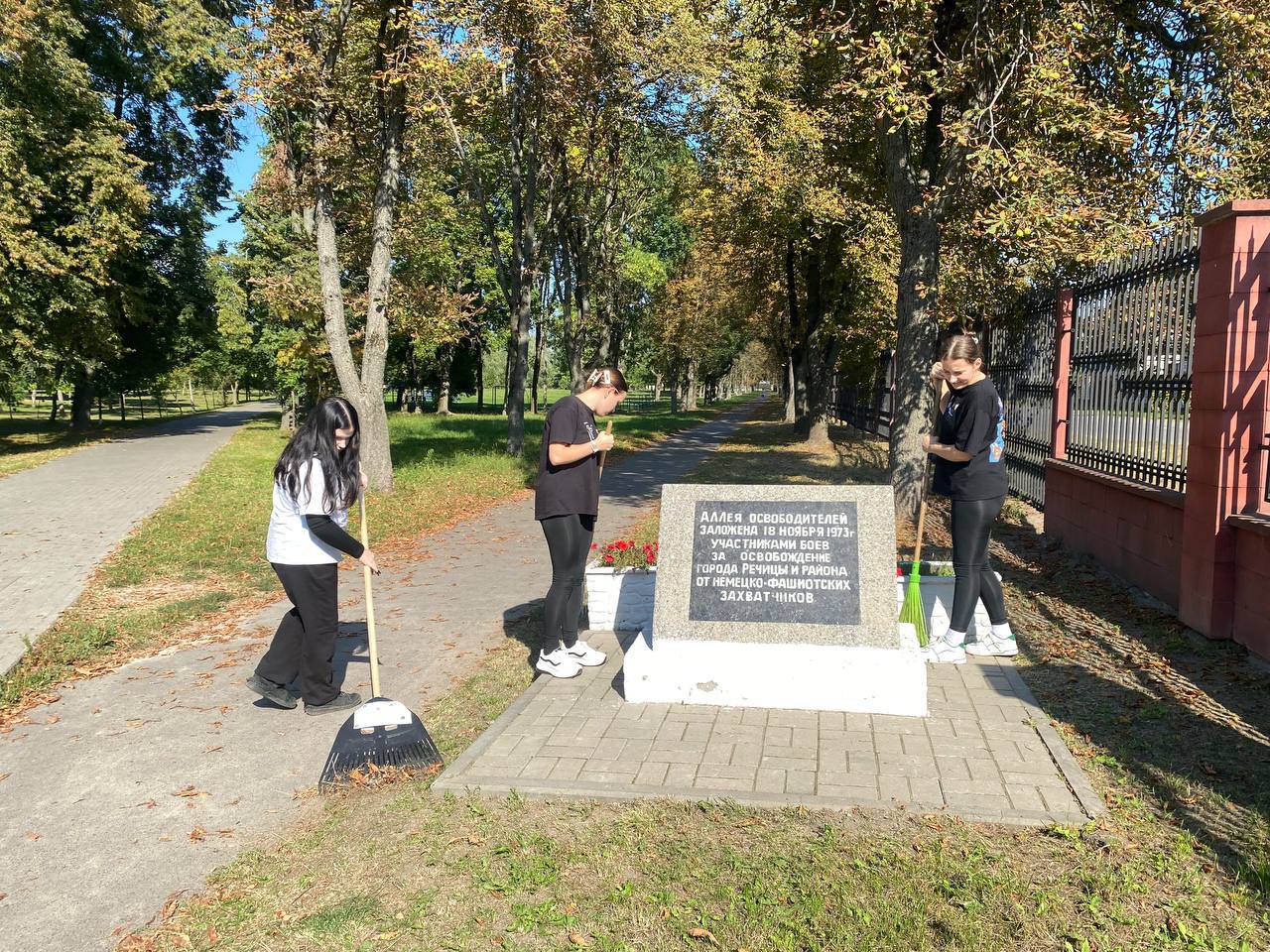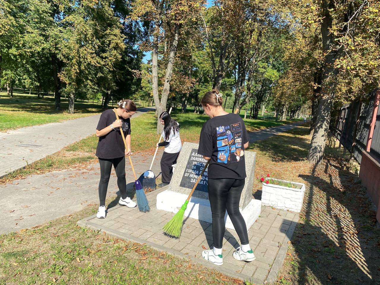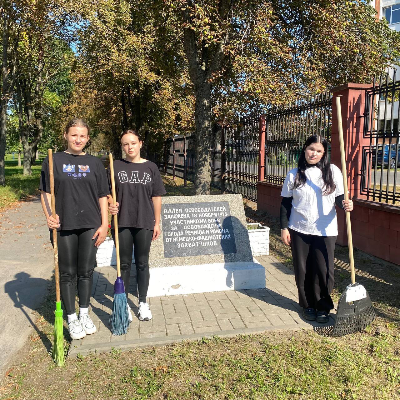 В День добрых дел, актив первички ОО «БРСМ» колледжа наводил порядок в сквере по ул. Достоевского, а также на памятном месте в парке «Победа» у Аллеи Победителей.