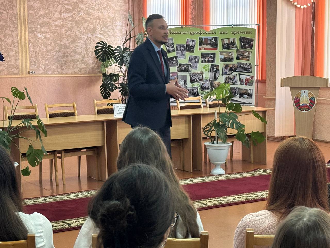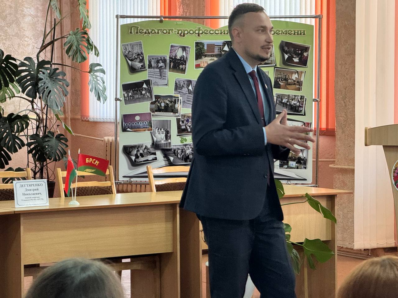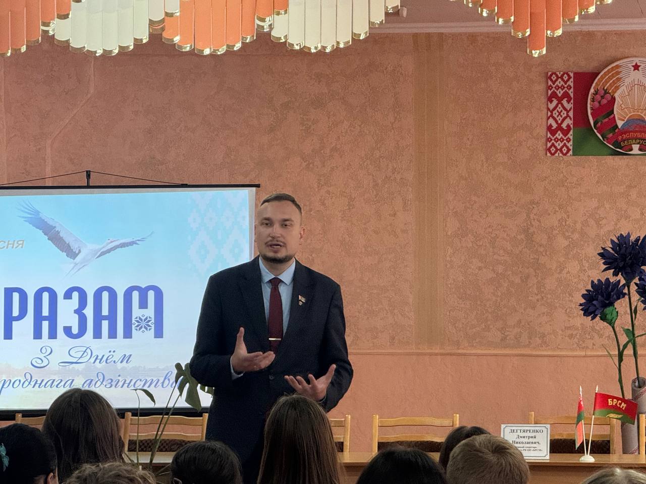 Первый секретарь ОО "БРСМ" Дегтяренко Дмитрий Николаевич начал своё выступление с небольшого размышления о судьбе, жизненных трудностях и положении белорусов, живших в Западной Беларуси и БССР до объединения.