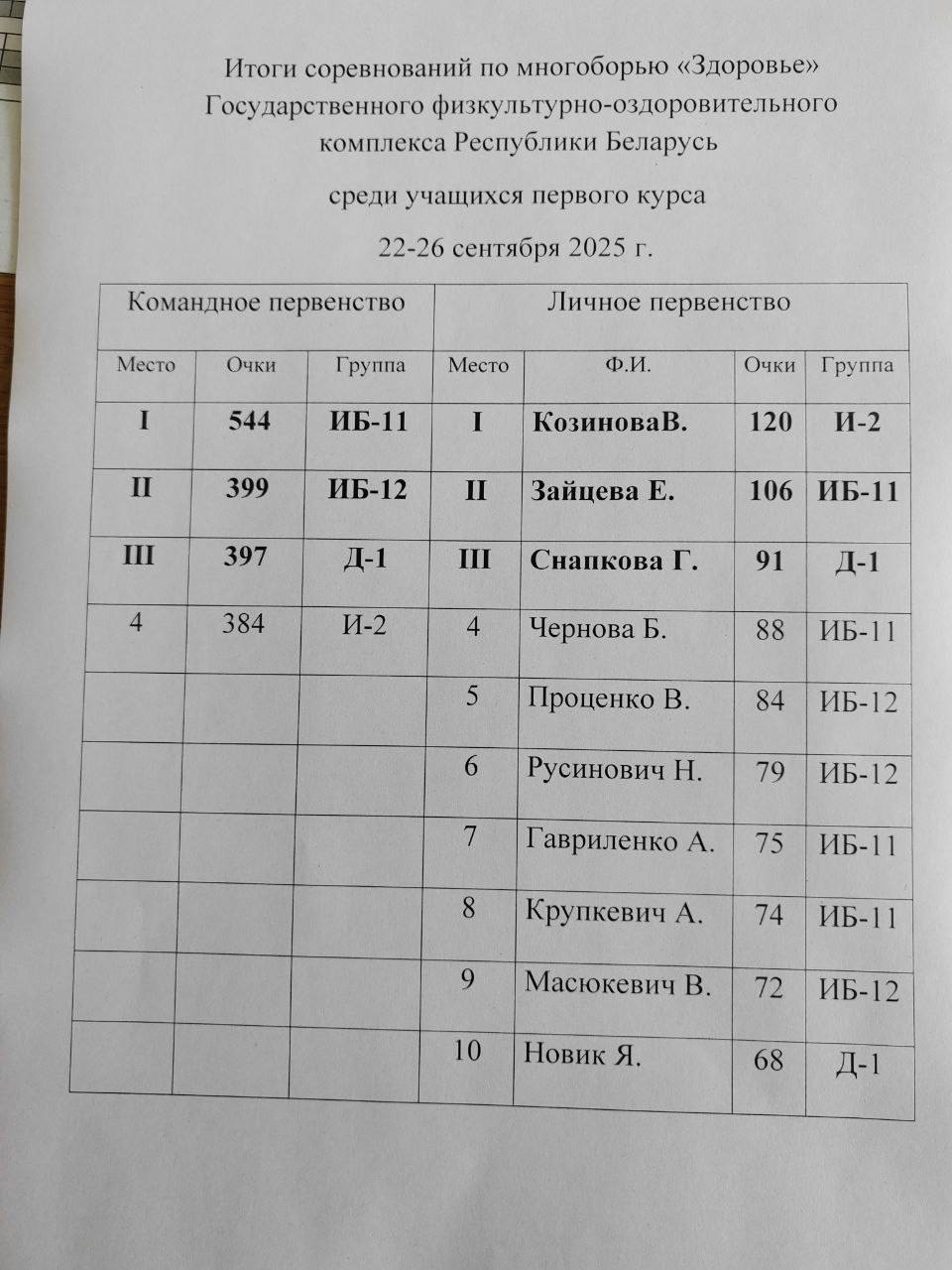 Мы поздравляем победителей из числа первокурсников с успешным стартом и желаем дальнейших спортивных достижений!