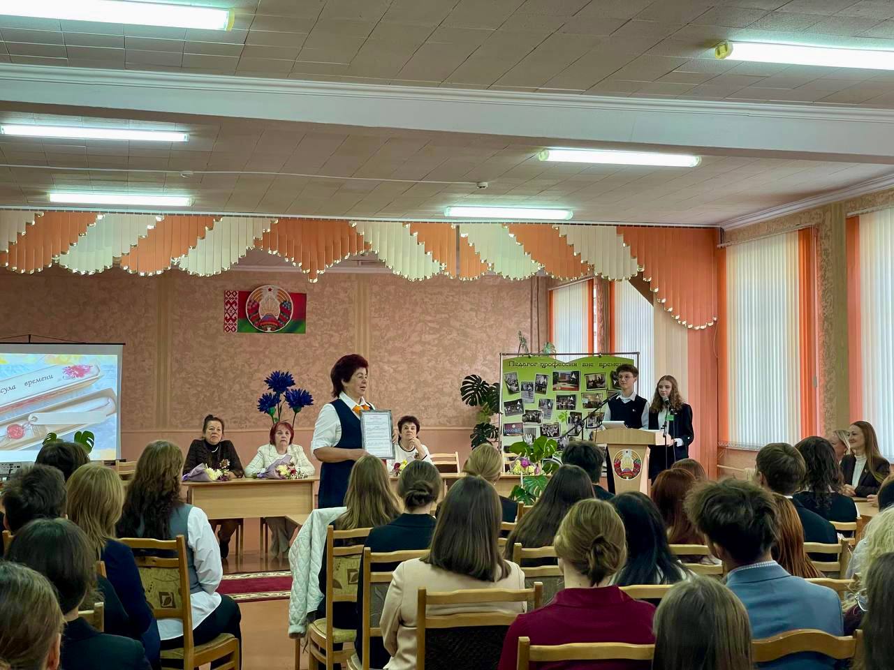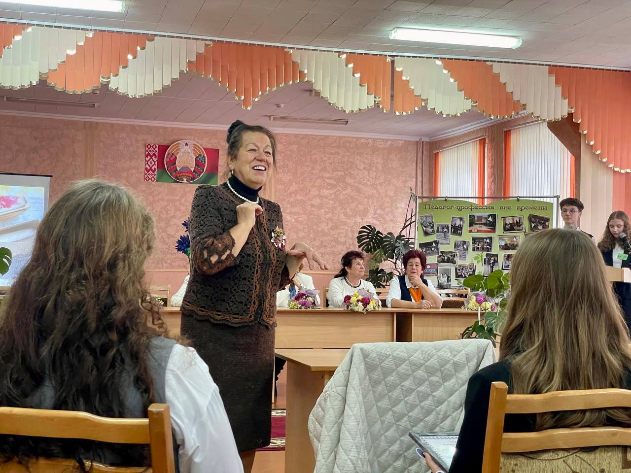 В этом году в гости к будущим педагогам пришли председатель Совета ветеранов отрасли образования Кравченко Н.В., член президиума районного Совета ветеранов Пырх А.В., член районного Совета ветеранов Липская З.И., заслуженный учитель Республики Беларусь Стасевич Т.В., председатель организации ветеранов СШ №10 Крот Л.М.