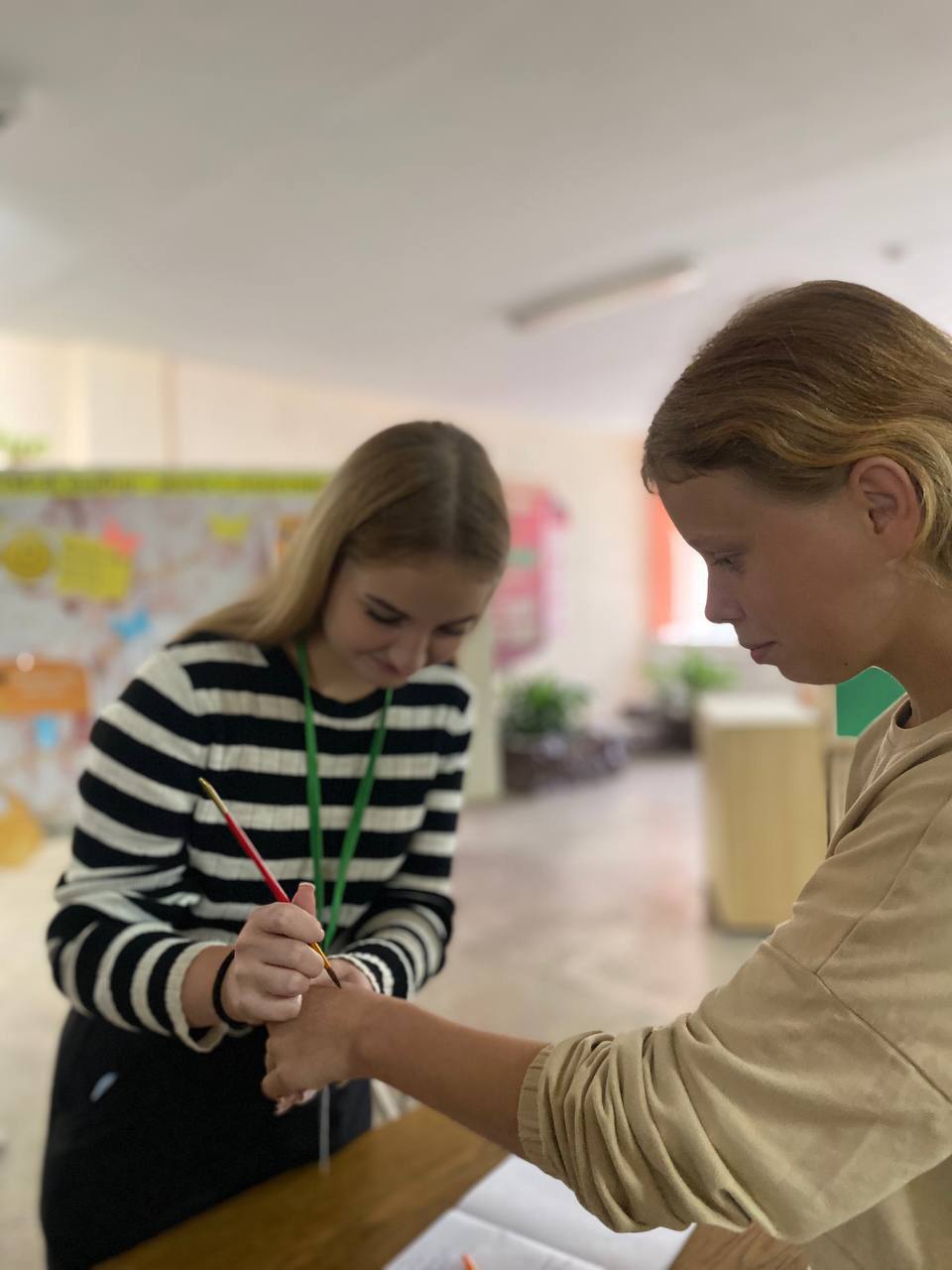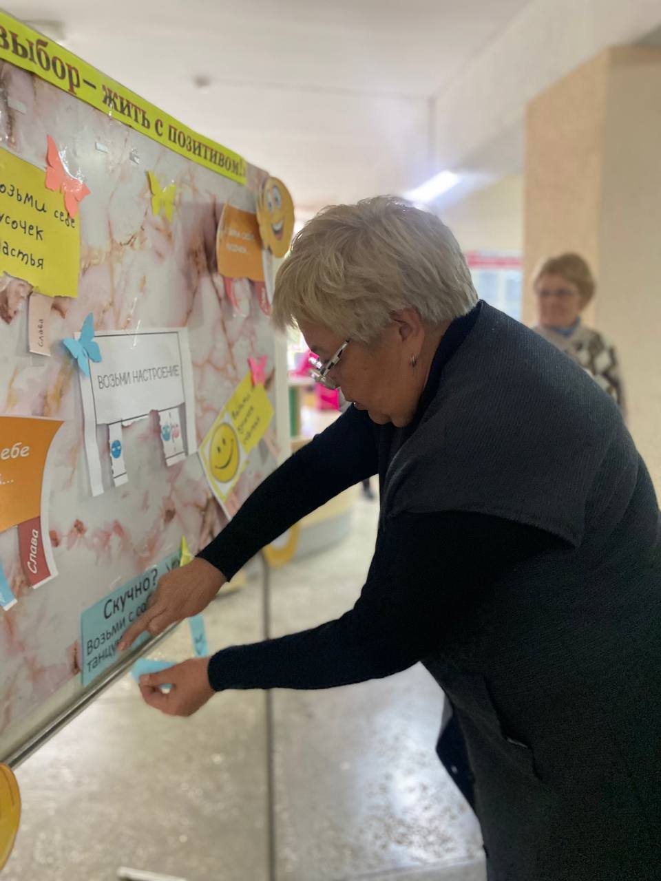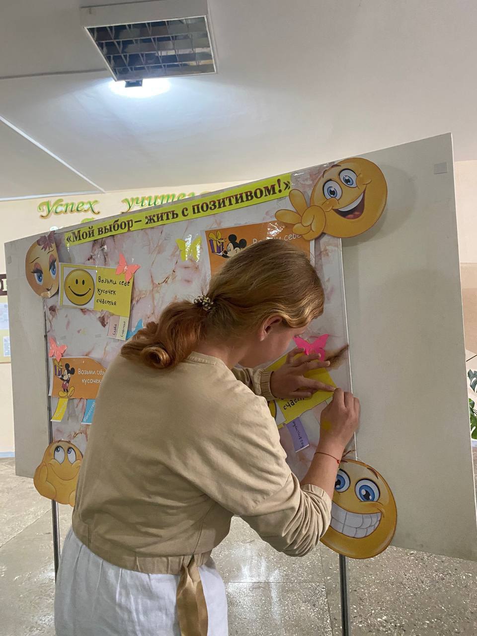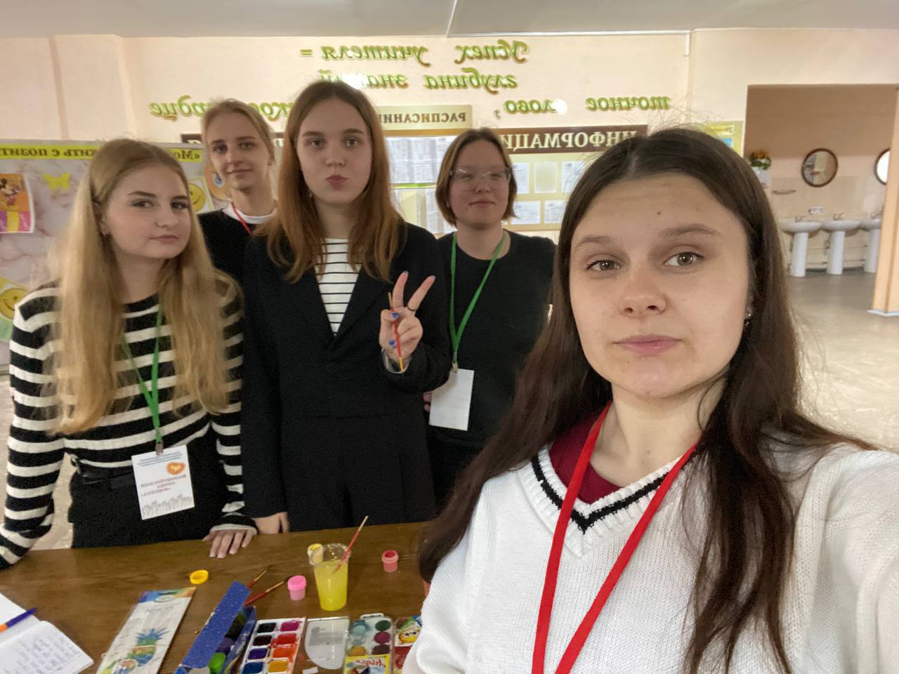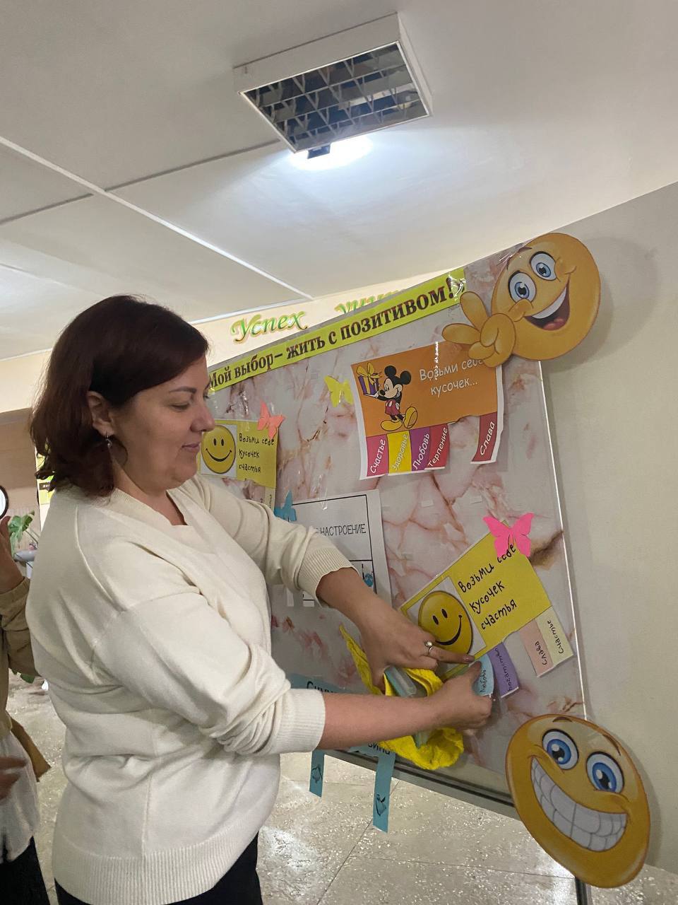 На переменах работали площадки: «Я люблю жизнь!» – позитивные художники с помощью красок и кисточки рисовали на руках солнце, сердечки, улыбки; предлагалось заполнить «Книгу добрых пожеланий», на стенде «Поляна настроения» желающие могли взять с собой мотивирующие фразы, помогающие поддерживать позитивный настрой и веру в себя. В фойе колледжа работал «Солнечный фотограф», который ждал учащихся, чтобы сделать позитивное фото.