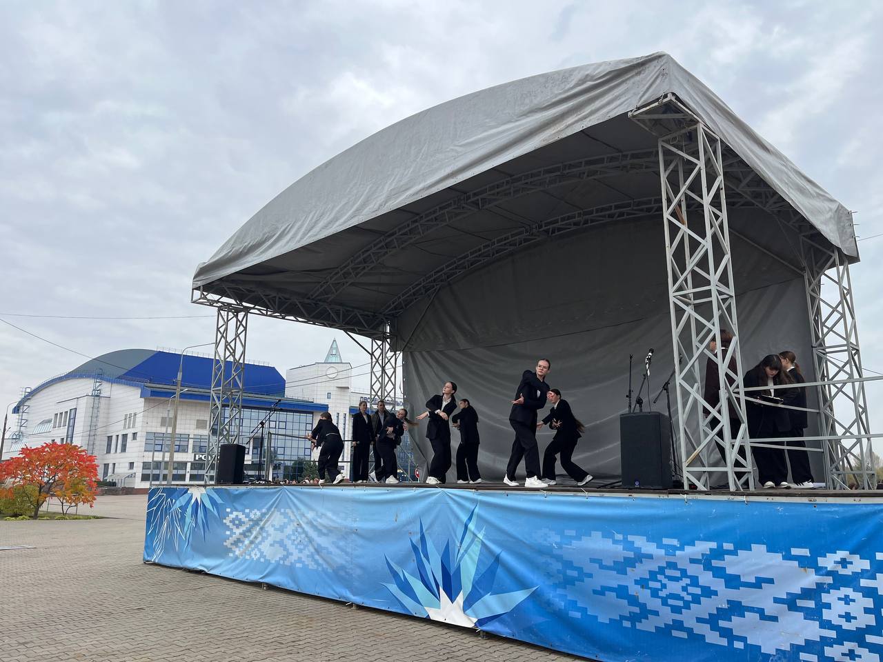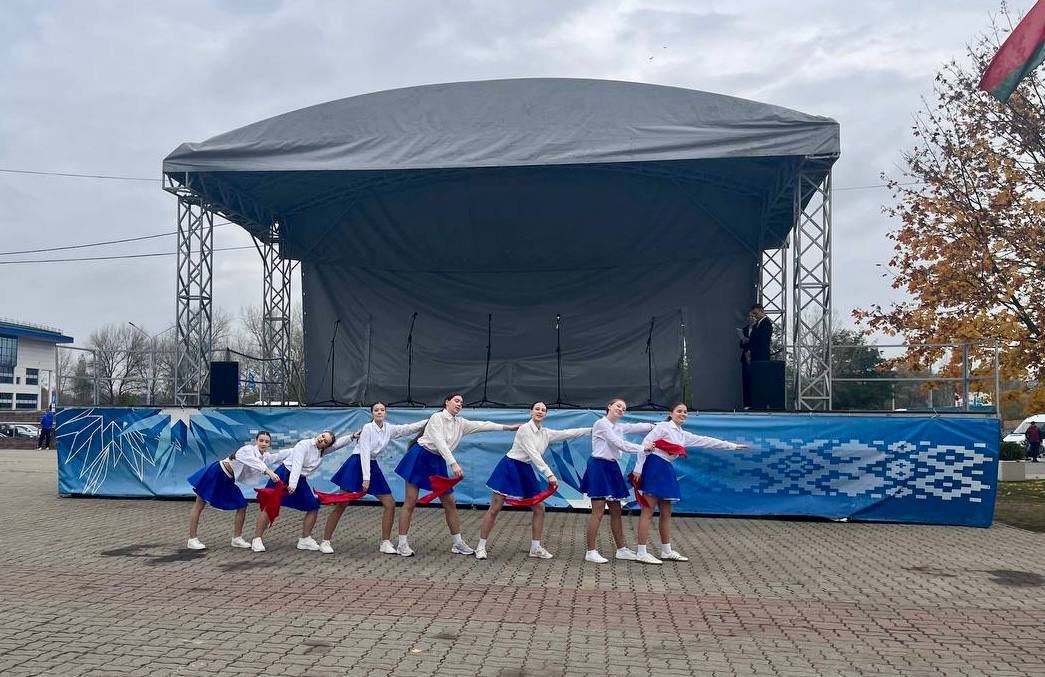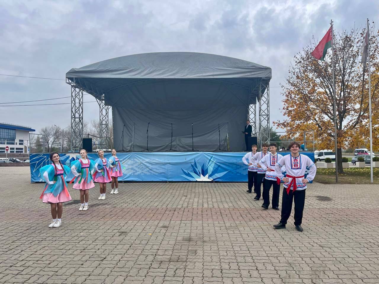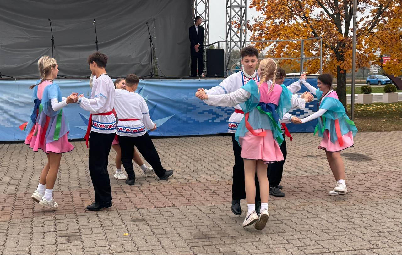 На площади около Ледового дворца г.Гомеля будущие педагоги презентовали для участников и гостей ярмарки творческую программу «Маладзёжны кiрмаш».