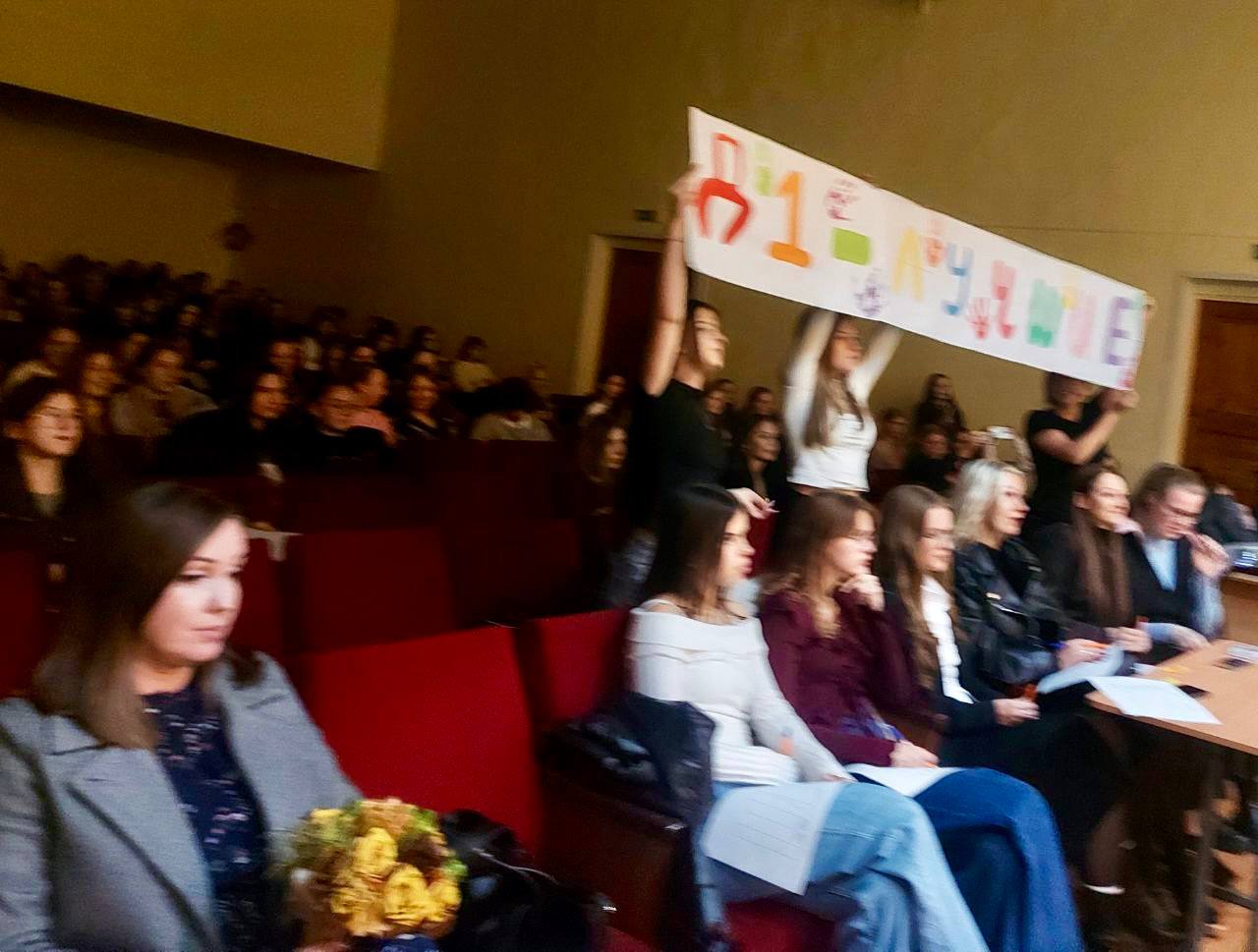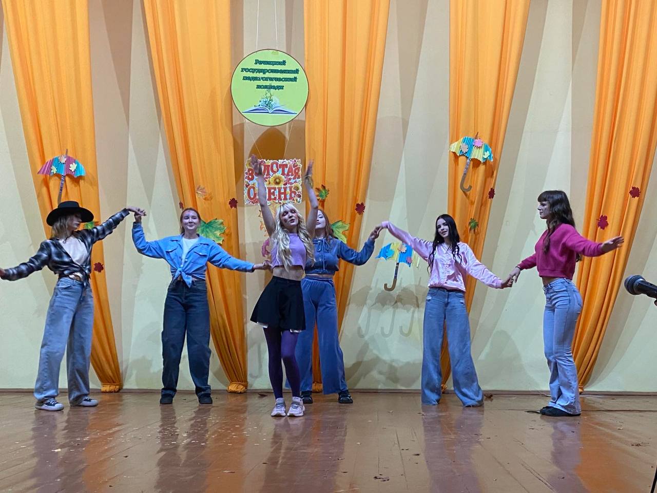 У многочисленных зрителей, заполнивших зал, была возможность восхищаться шикарными осенними нарядами и захватывающими концертными номерами. Участниц поддерживали их кураторы и одногруппники.