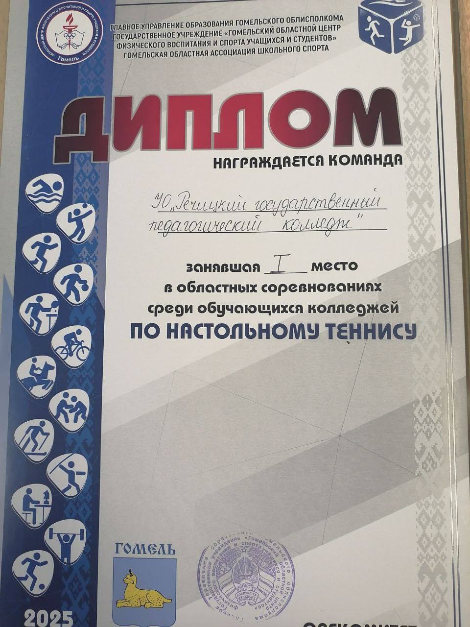 20 ноября 2025 года на базе УО "Речицкий государственный педагогический колледж " проходили областные соревнования среди обучающихся колледжей по настольному теннису.