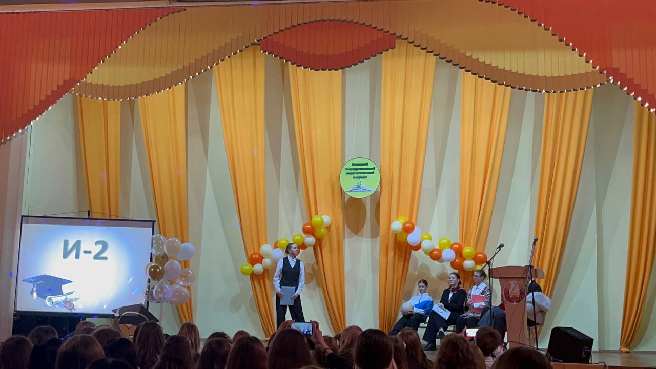 20 ноября в колледже состоялся яркий праздник «Веселый первокурсник». Мероприятие объединило торжественные моменты и творчество: учащиеся 1-го курса представили вниманию видеоролик «Наши первые два месяца в колледже». Второй этап программы: творческий номер, где учащиеся группы готовили номера художественной самодеятельности, демонстрировали свои вокальные, хореографические, артистические способности, юмор и находчивость. Команды показали высокий уровень подготовки. От группы двоим учащимся были заданы вопросы о колледже. Самыми быстрыми и внимательными оказались учащиеся группы И-2.