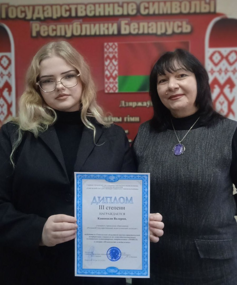 25 октября на базе учреждения образования «Гомельский государственный университет имени Ф. Скорины» и учреждения образования «Гомельский государственный институт развития образования» прошла Гомельская областная научно-практическая конференция учащихся по естественнонаучным и социально-гуманитарным направлениям «Поиск». В конференции приняли участие 209 учащихся, представивших свои исследования в 17 секциях. Дипломом III степени удостоена Кашицкая Валерия Владимировна, учащаяся группы Д-2, научный руководитель – Старушенко Е.В.