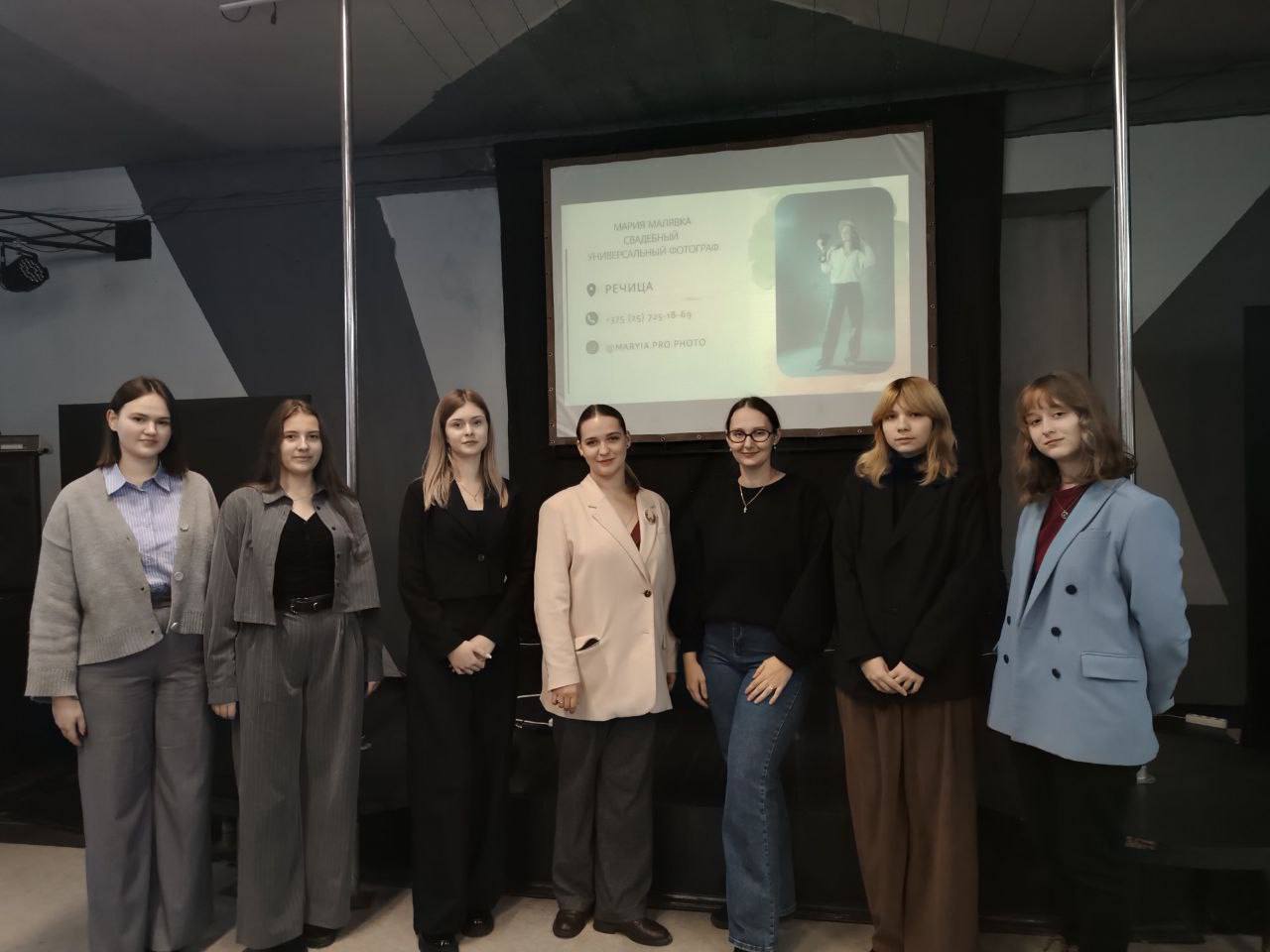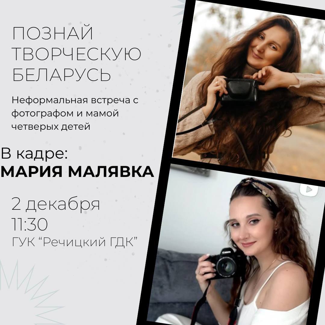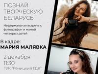 В рамках молодёжного проекта "Познай творческую Беларусь" учащиеся колледжа встретились с многодетной мамой, красивой женщиной и интересным фотографом Марией Малявка. Встреча прошла в интерактивном формате: в начале Мария рассказала немного про свой жизненный и творческий путь, а потом присутствующие на встрече девушки забросали её вопросами - как Вы, многодетная мать, успеваете всё (совсем не успеваю, но стараюсь), было ли желание бросить фотографию (нет, это моя страсть, увлечение и заряд бодрости), какие советы дали бы начинающим (во-первых ни в коем случае не обесценивать себя, и конечно же никогда не останавливаться в своём развитии, так как нет предела совершенству).