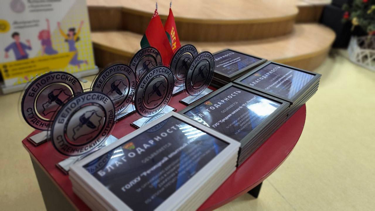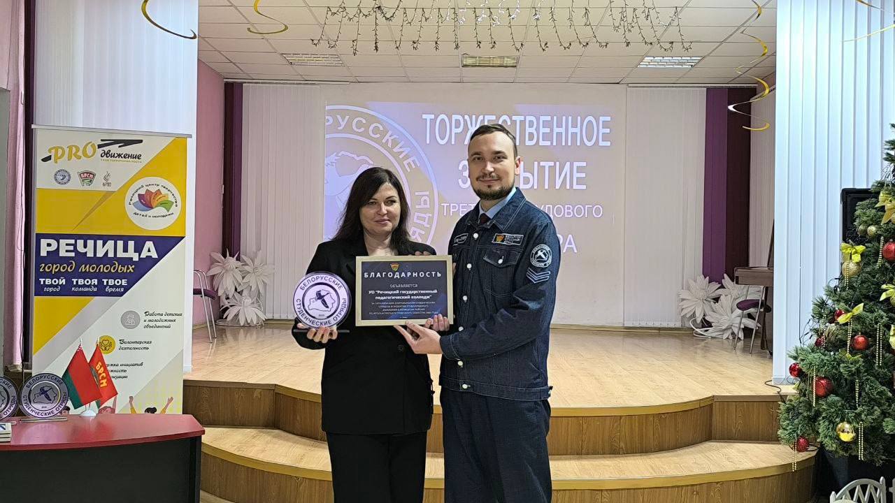 Первичная организация ОО «БРСМ» Речицкого педколледжа была удостоена благодарности за развитие студотрядного движения в Речицком районе, а также памятным брендовым сувениром.