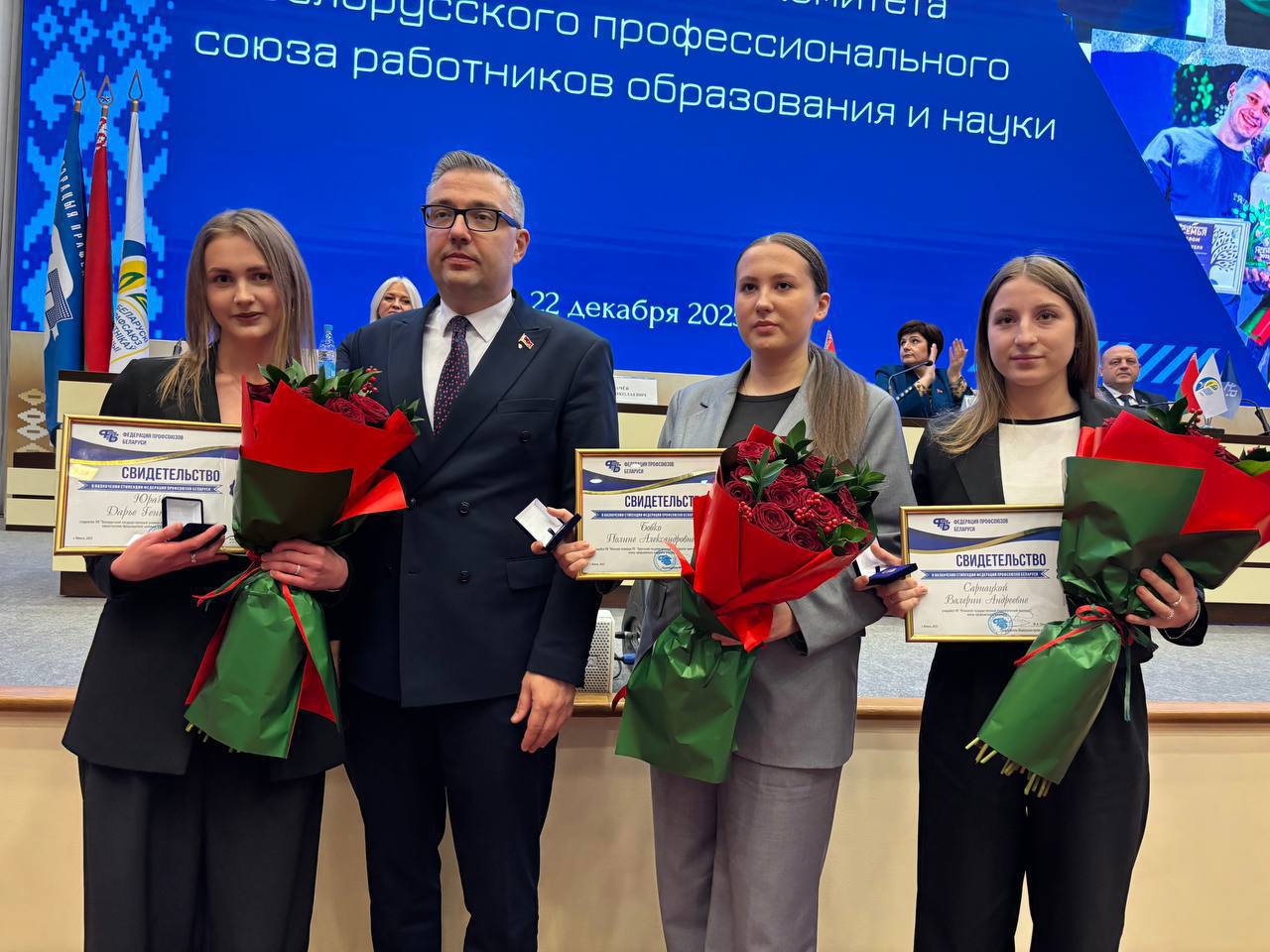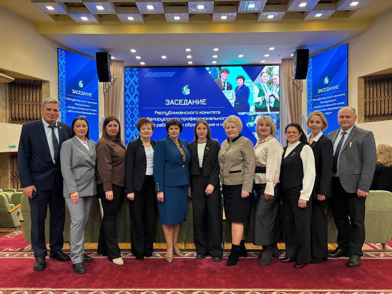 В конце декабря в заседании Республиканского комитета Белорусского профессионального союза работников образования и науки принимала участие делегация Гомельской областной организации Профсоюза, в состав которой входила учащаяся Речицкого государственного педагогического колледжа Сарнацкая Валерия.