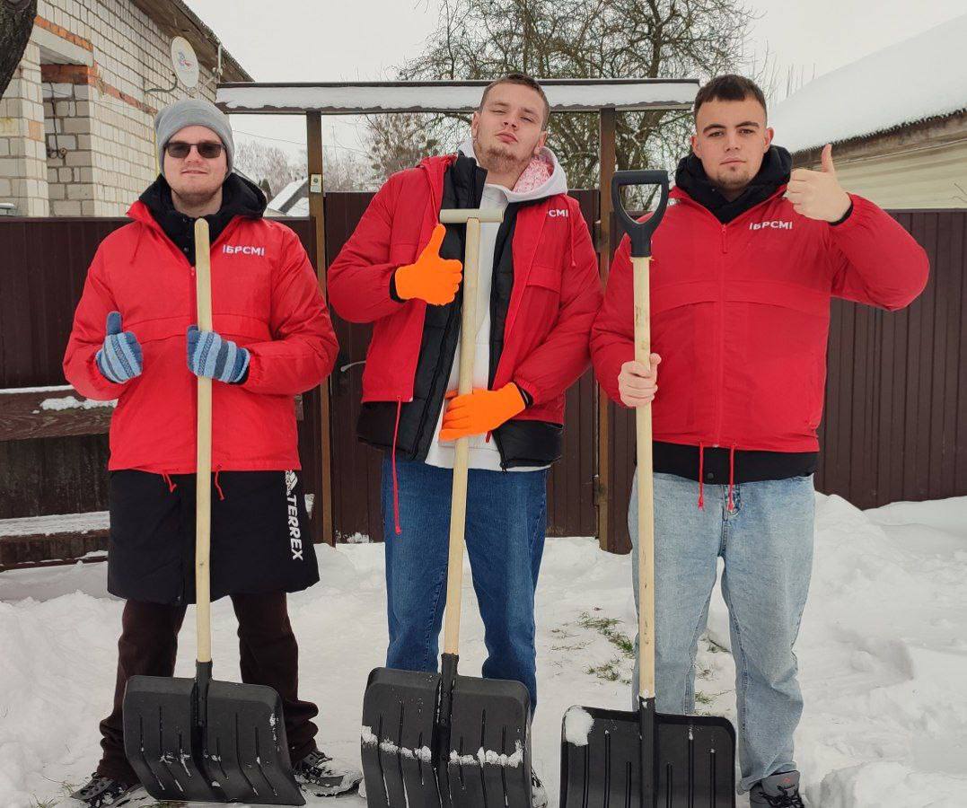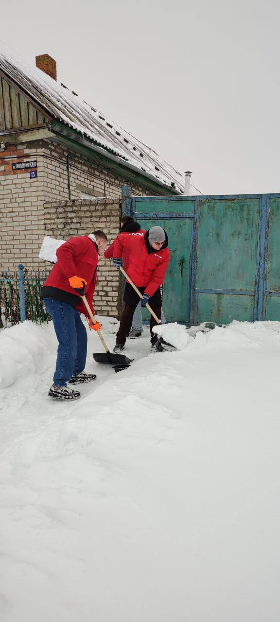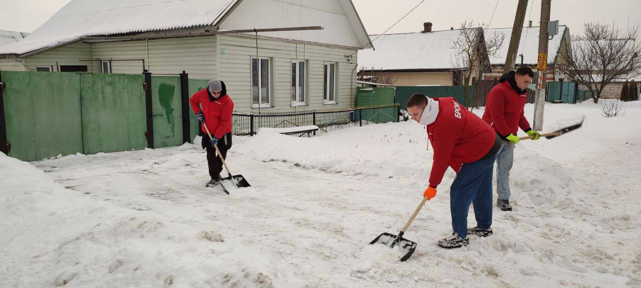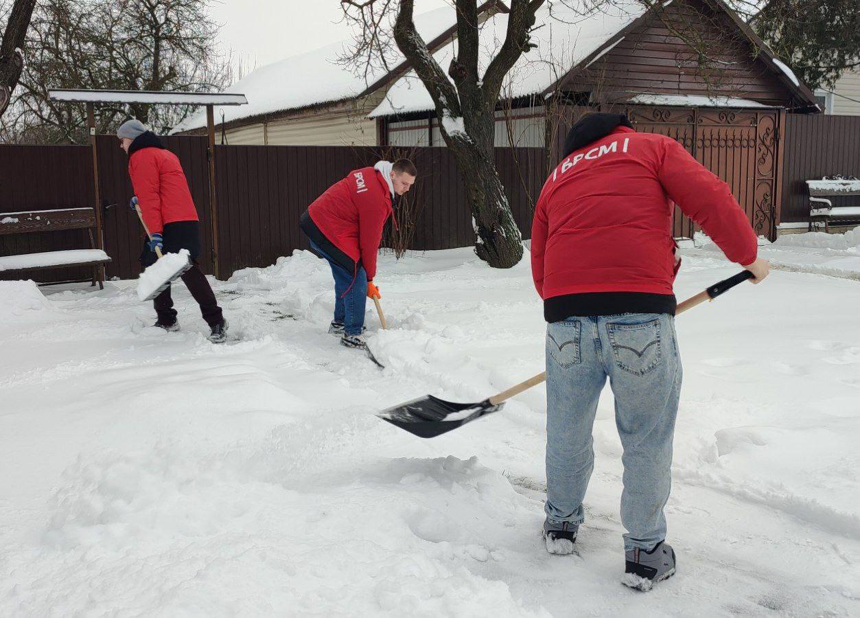 Волонтеры Речицкого райкома БРСМ помогают с расчисткой снега.