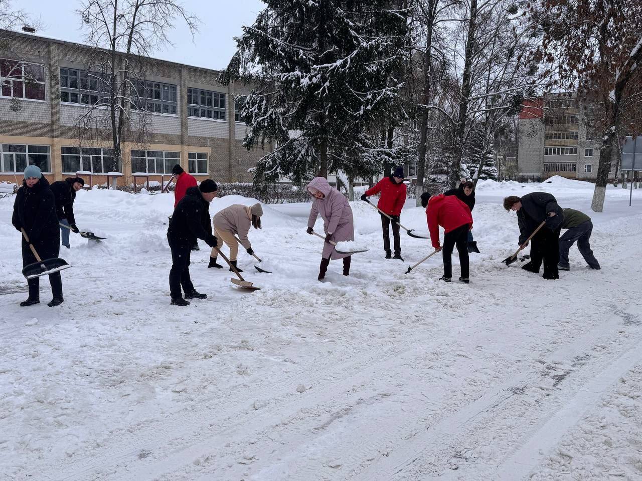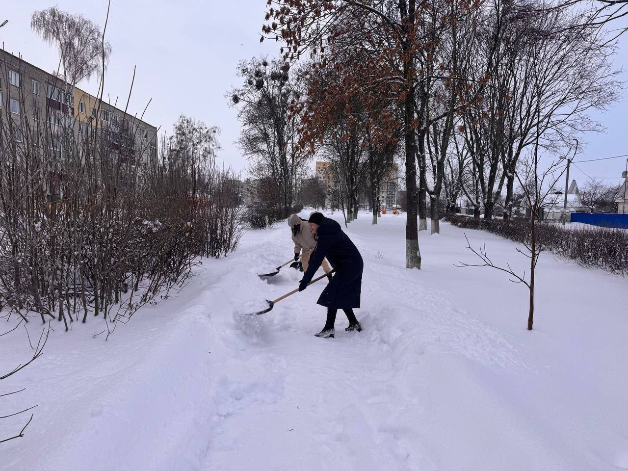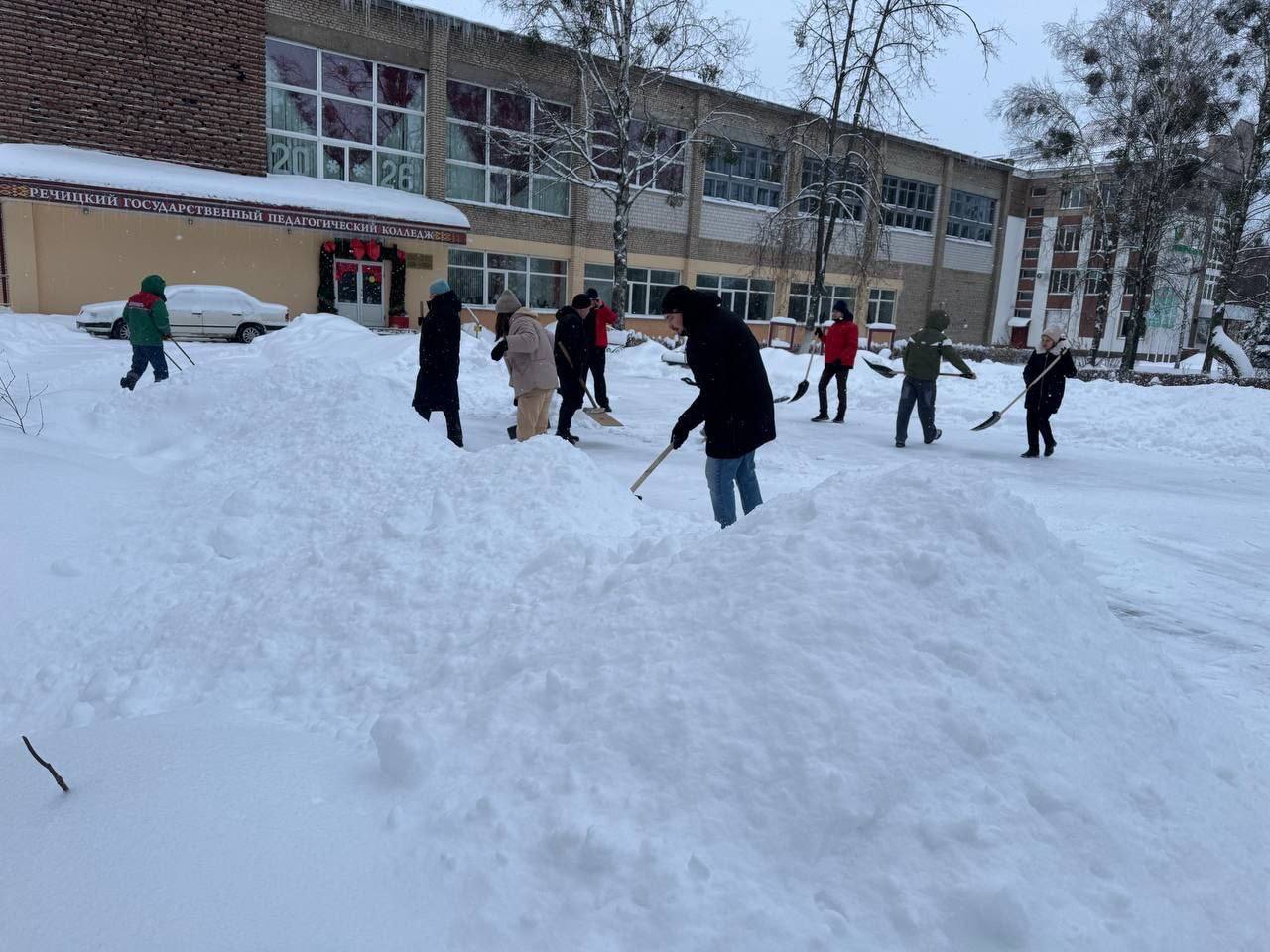 Работники УО «Речицкий государственный педагогический колледж» совместно с активистами ОО «БРСМ» и первым секретарём РК ОО «БРСМ» в рамках акции «ЗаДело» активно включились в работу по уборке от снега на пешеходных дорожках в сквере по улице Достоевского, а также расчистили территорию и парковку возле педагогического колледжа.