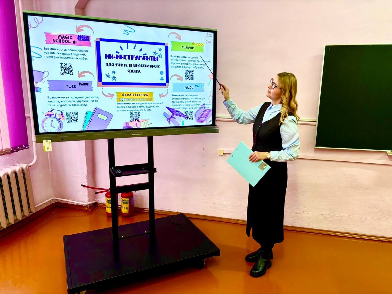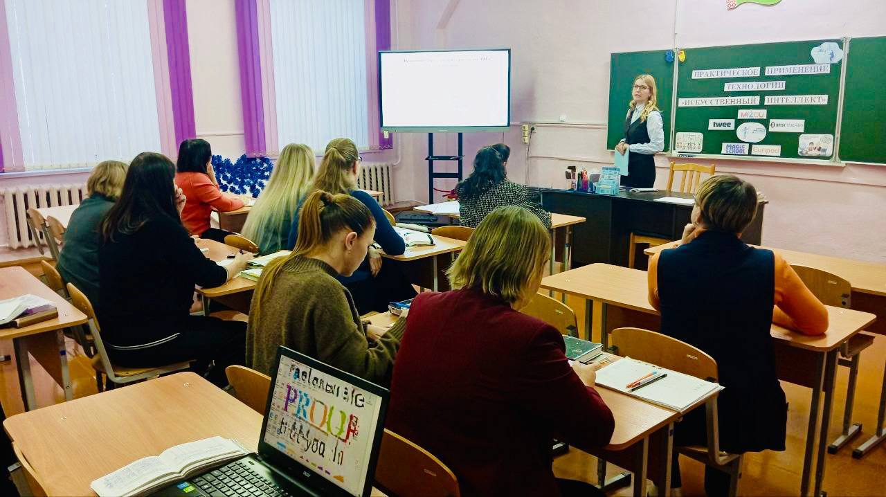 В ходе выступления было отмечено, что внедрение ИИ повышает эффективность обучения и обеспечивает персонализированный подход. Участникам семинара были представлены современные ИИ-инструменты (Twee, Magic School, Brisk Teaching, Mizou, Curipod), рассмотренные с точки зрения их методического потенциала и интерактивных возможностей. Также продемонстрированы скринкасты по созданию образовательного чат-бота в Mizou и интерактивной презентации в Curipod.