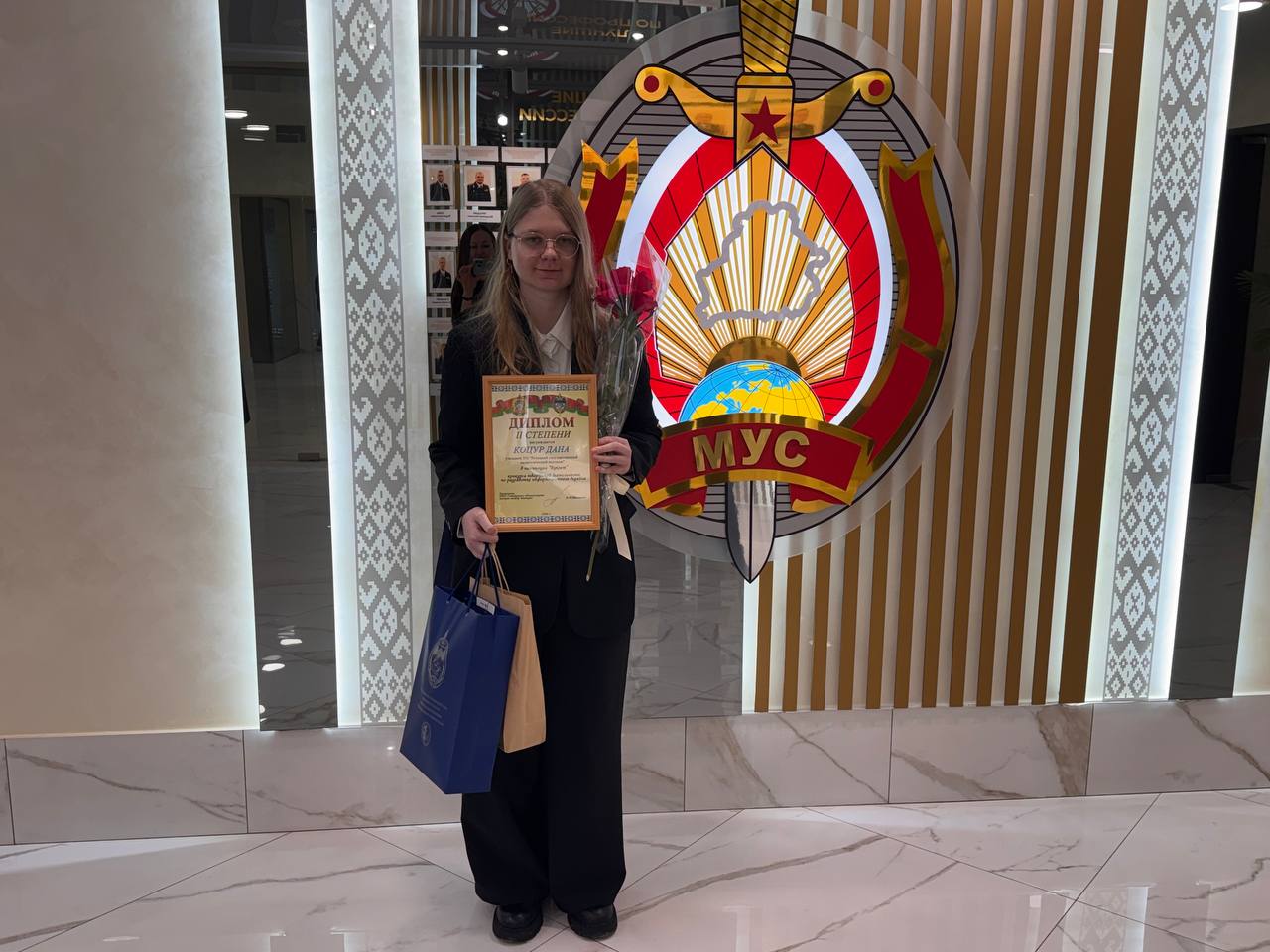 Среди победителей- учащаяся Речицкого государственного педагогического колледжа Коцур Дана, занявшая 2 место в номинации «Буклет» с работой «Щит от цифровых угроз».
