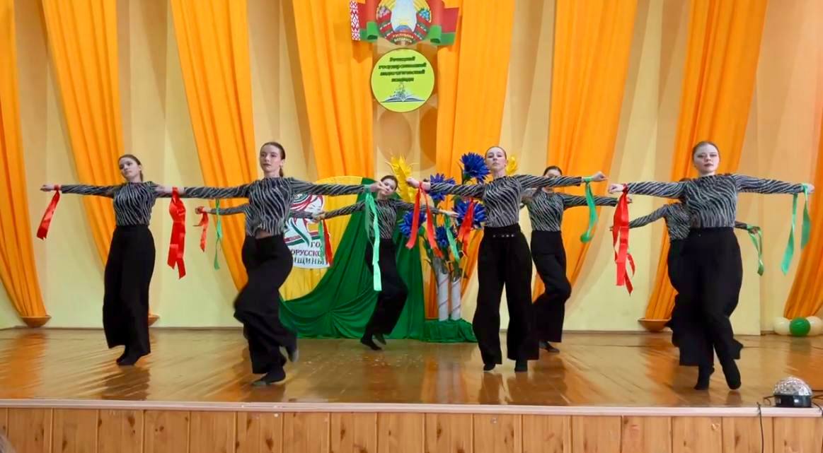 Преподаватели Русецкая Т.С., Романцева Т.А. и учащиеся групп ИБ-11, ИБ-12, ИБ-21, ИБ-22, ИБ-32, И-2, Д-1, Д-2 подготовили гражданско-патриотическое мероприятие, посвященное Году белорусской женщины, которое никого не оставило равнодушным. Мероприятие началось с чтения стихотворения "Год женщины", а продолжилось исполнением зажигательного этнического танца.