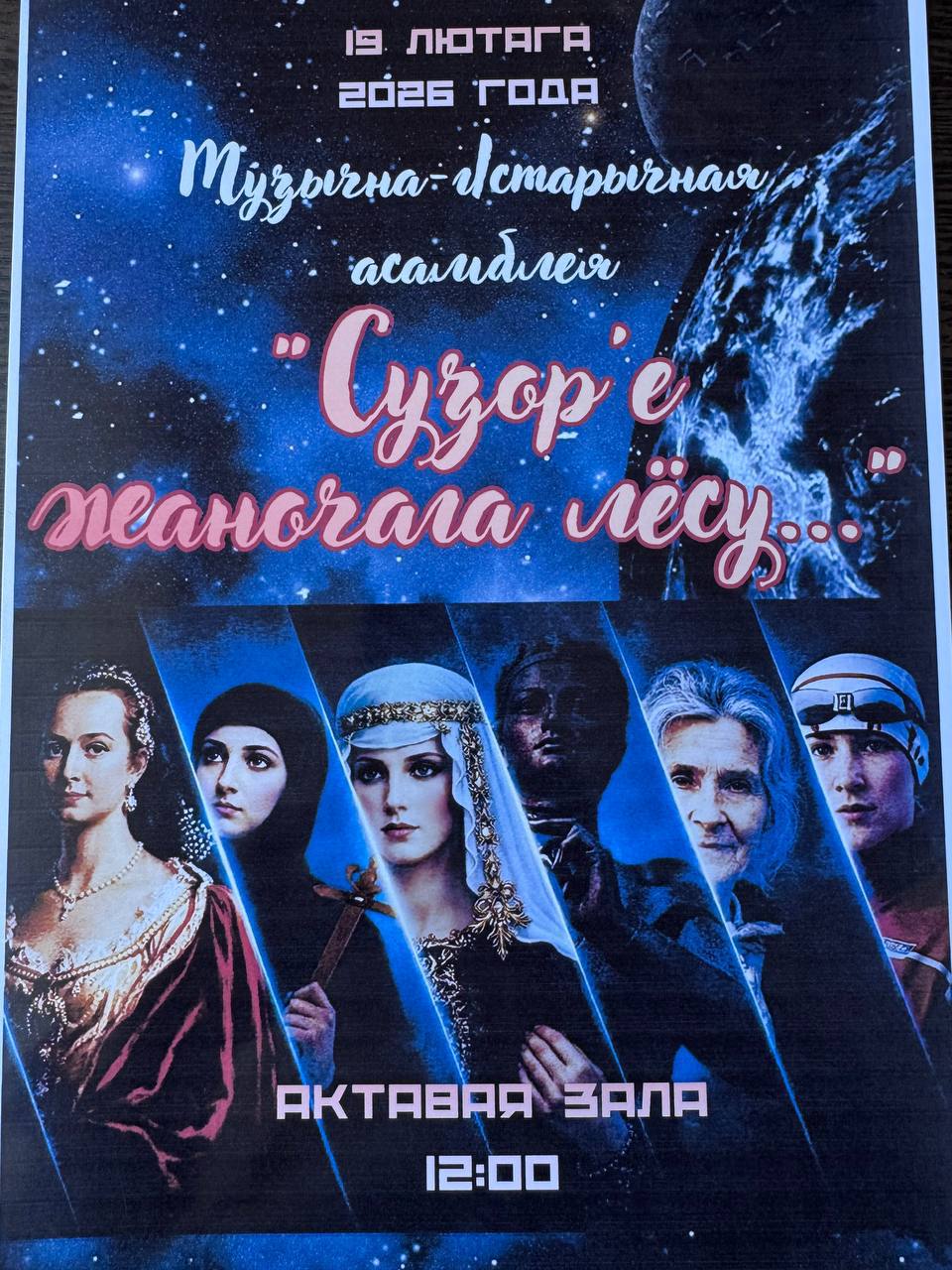 Напярэдаднi Дня роднай мовы ў актавай зале Рэчыцкага дзяржаўнага педагагічнага каледжа адбылася музычна-гiстарычная асамблея "Сузор'е жаночага лёсу", прысвечанае Году беларускай жанчыны. Навучэнцы і выкладчыкі сабраліся разам, каб успомніць тых, чые імёны назаўсёды ўпісаны ў гісторыю нашай краіны.