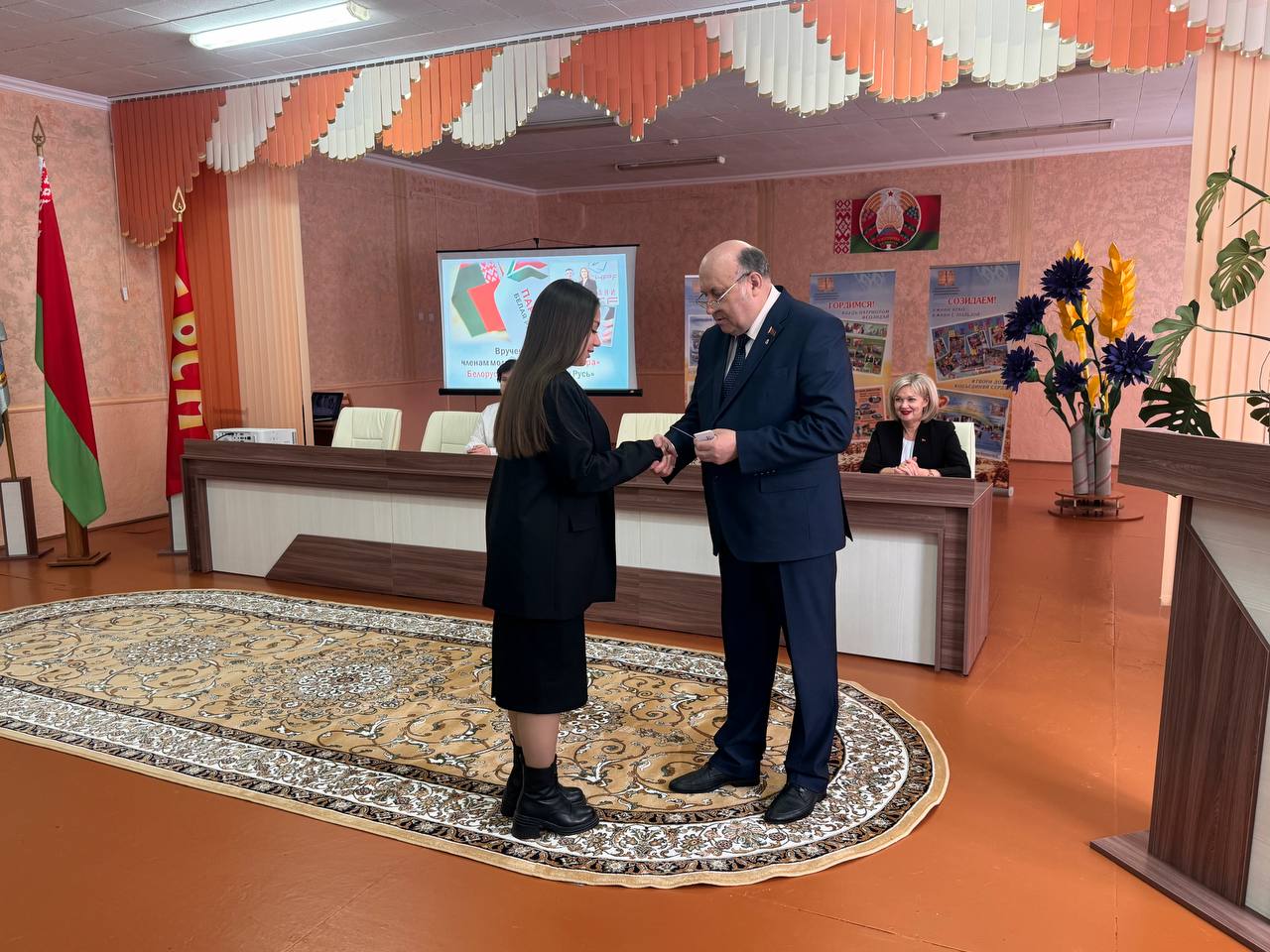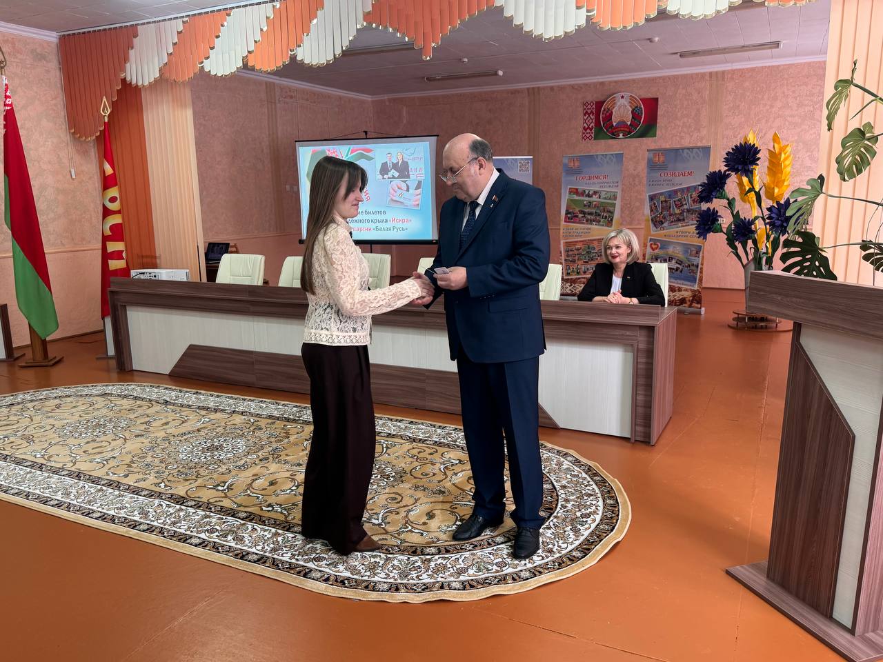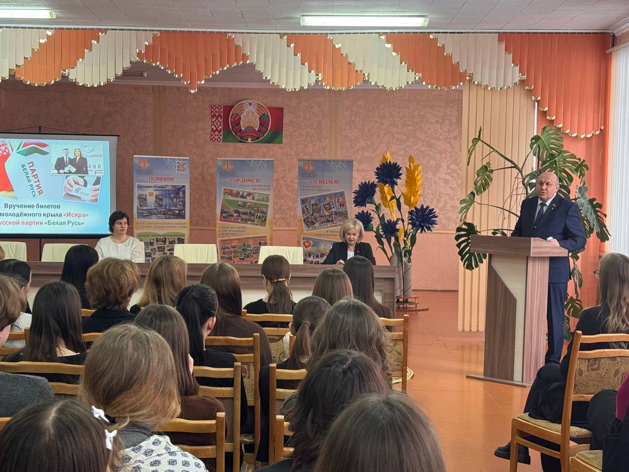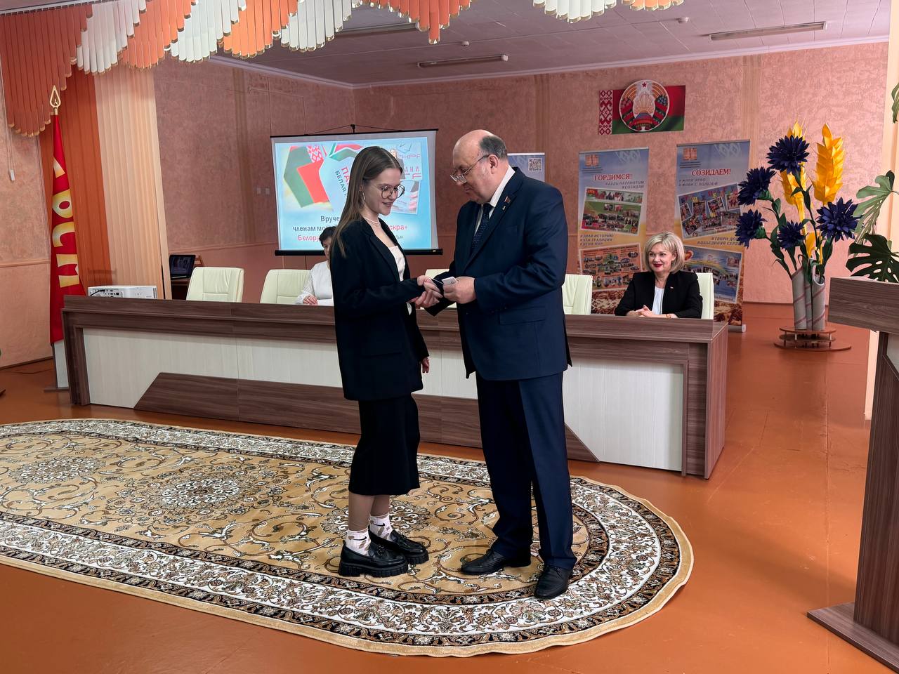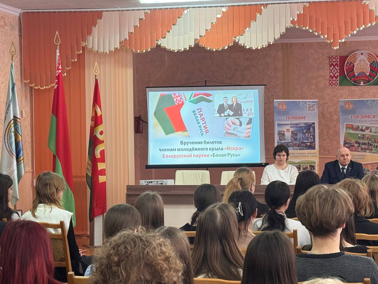 В Речицком педагогическом колледже в торжественной обстановке прошло вручение членских билетов Белорусской партии "Белая Русь" 18 учащимся и работникам колледжа.