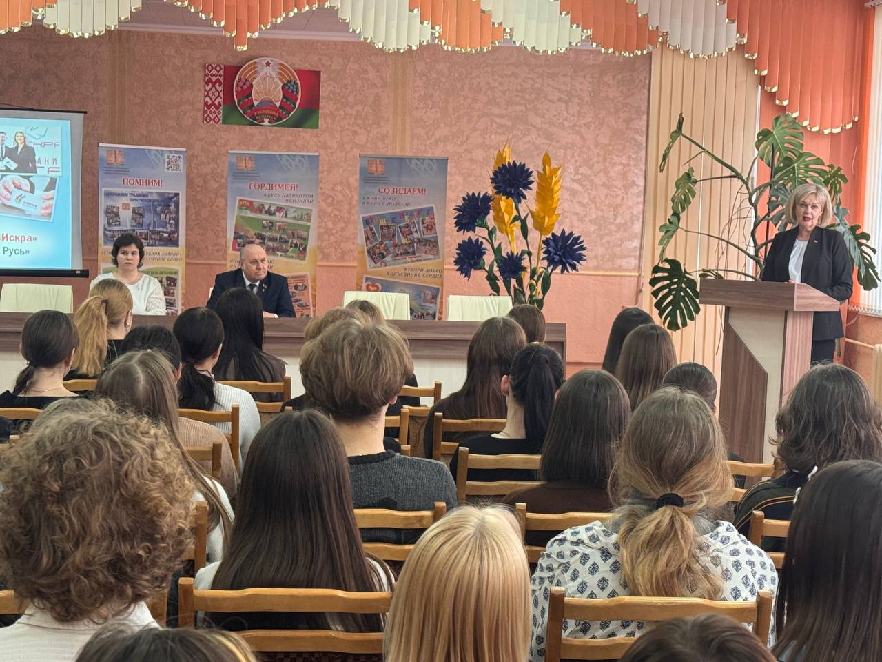 Директор колледжа Егорова Л.А. познакомила присутствующих на мероприятии учащихся колледжа с основными направлениями молодежного движения "Искра".