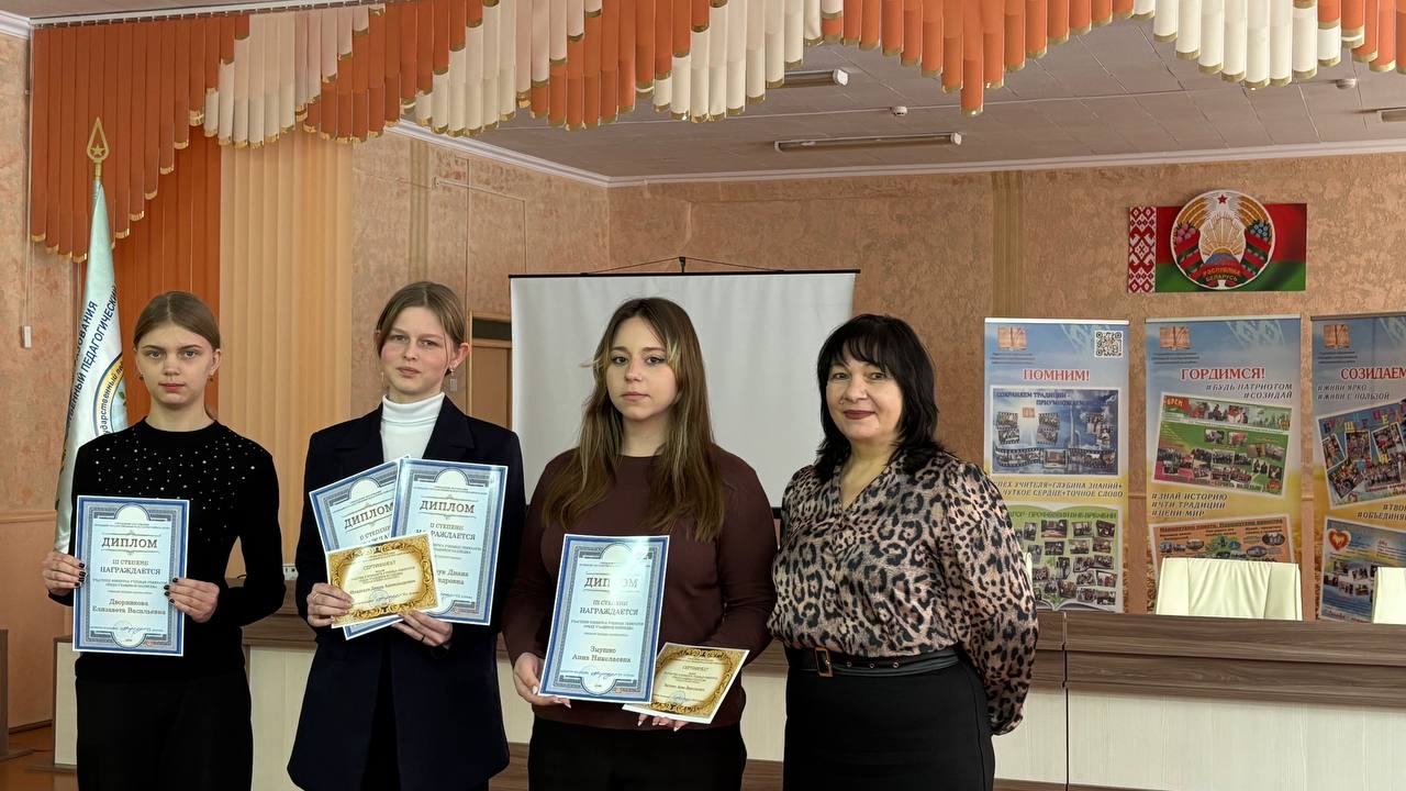 III степени – Тумарев А.А., учащийся группы ИБ-21; Дворникова Е.В., учащаяся группы Д-1; Журо А.П., учащаяся группы Д-2; Лазуткина В.А., учащаяся группы Д-2; Кашицкая В.В., учащаяся группы Д-2; Ярец Д.Д., учащаяся группы Д-2; Змушко А.Н., учащаяся группы ИБ-12.