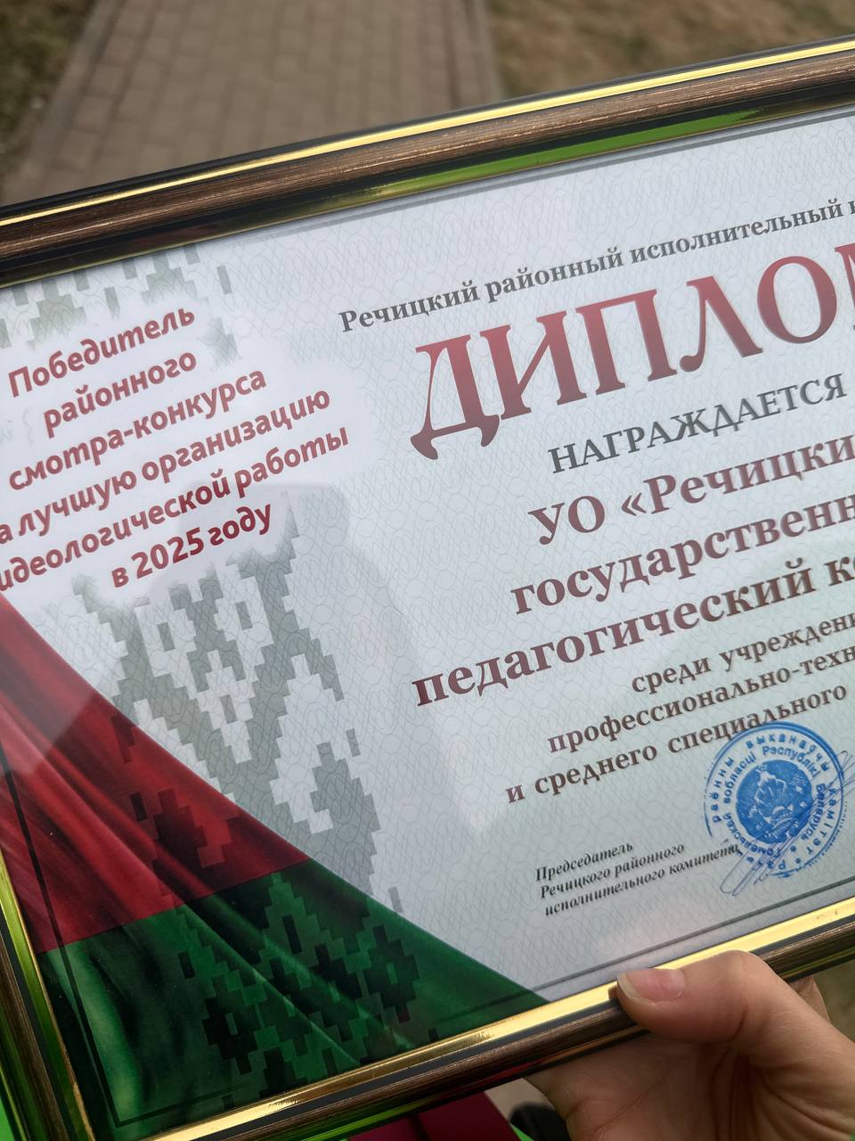 Диплома победителя в номинации «Лучшая организация идеологической работы в трудовом коллективе по итогам 2025 года» удостоен Речицкий государственный педагогический колледж. Это высокая оценка не просто работы, а настоящей верности выбранному пути и умения вести за собой.