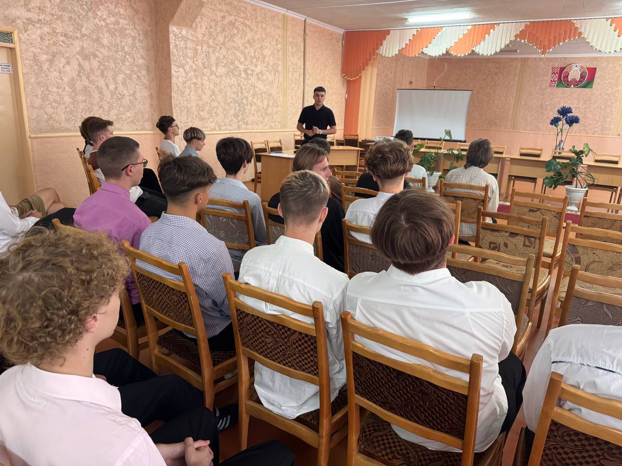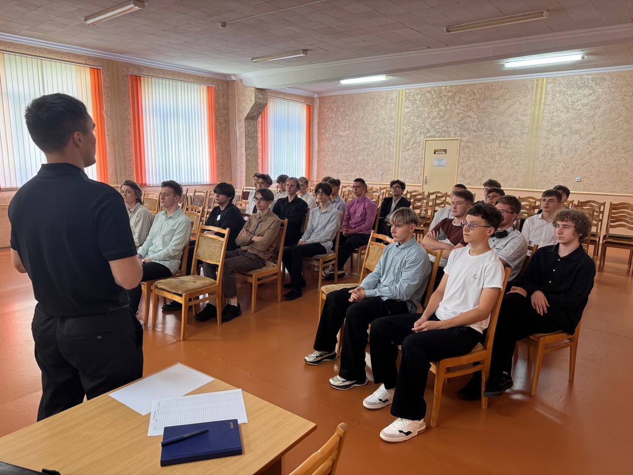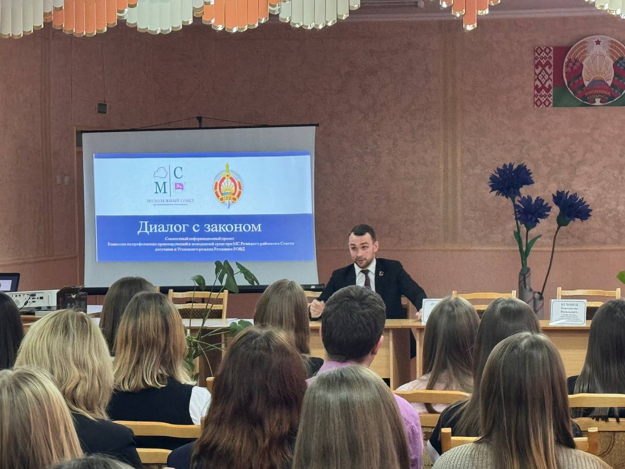 В рамках проекта «Диалог с законом» в колледже состоялась информационная встреча с учащимися III-IV курсов. Мероприятие было направлено на правовое просвещение, профилактику преступности и формирование ответственного поведения. В качестве экспертов выступили: Лопатин Артём Александрович - Делегат ВНС, помощник депутата Палаты представителей Национального Собрания Республики Беларусь; Тихонов Олег Владимирович - заместитель начальника уголовного розыска Речицкого РОВД; Луцкович Дмитрий Васильевич - старший инспектор ДПС ГАИ Речицкого РОВД. Проект «Диалог с законом» реализуется совместно с Комиссией по профилактике правонарушений в молодежной среде при Молодежном Совете Речицкого районного Совета депутатов и Отделом уголовного розыска Речицкого РОВД. (Фотоотчёт) |