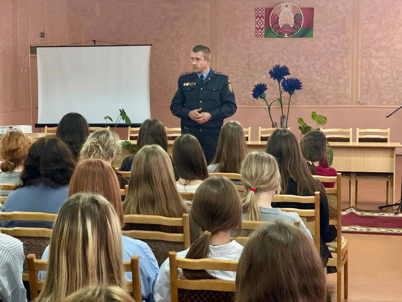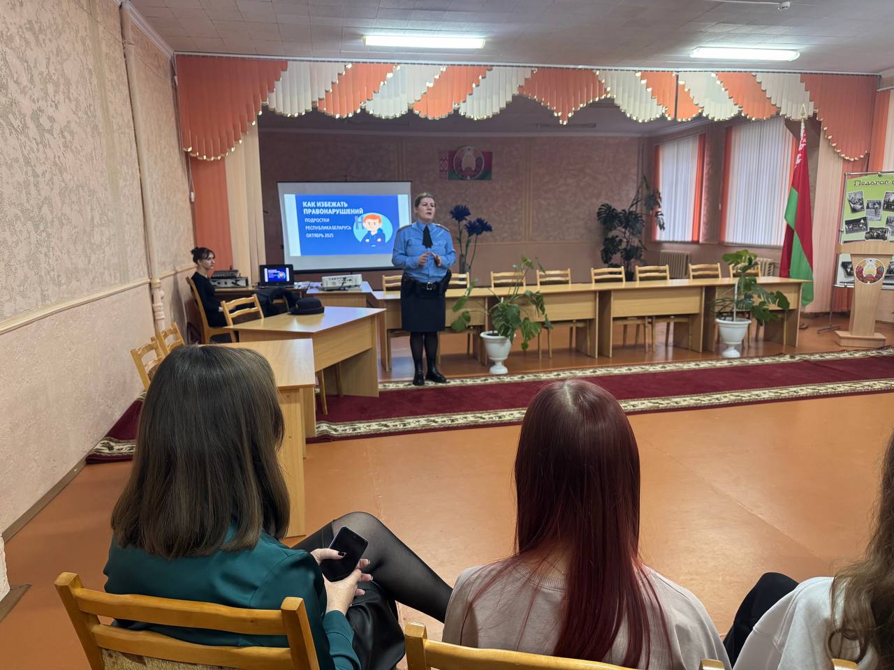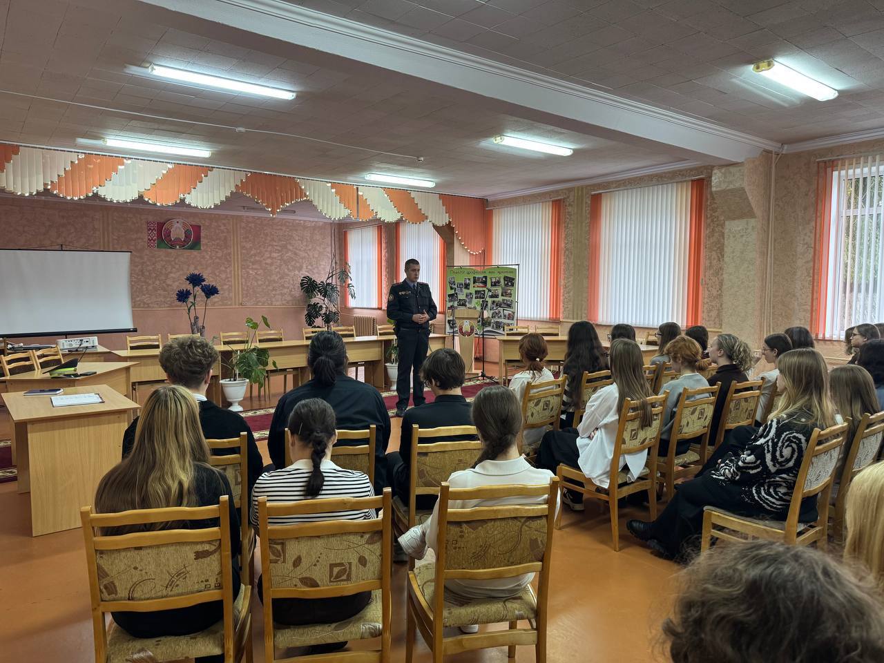 В целях профилактики правонарушений и повышения уровня правовой грамотности у учащейся молодежи 4 октября 2025 года прошла встреча участкового инспектора ИДН Речицкого РОВД Бода Ирины Николаевны с учащимися первого курса. В ходе проведения встречи были освящены темы, касающиеся мер уголовной и административной ответственности за совершение правонарушений и преступлений против общественного порядка и правонарушений, связанных с распитием алкогольных, слабоалкогольных напитков и пива, потребление, сбыт наркотических средств или психотропных веществ, преступлений в сфере высоких технологий. В заключение инспектор ИДН призвала присутствующих не допускать правонарушений и быть законопослушными гражданами. (Фотоотчёт) |