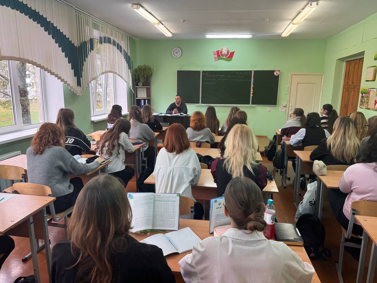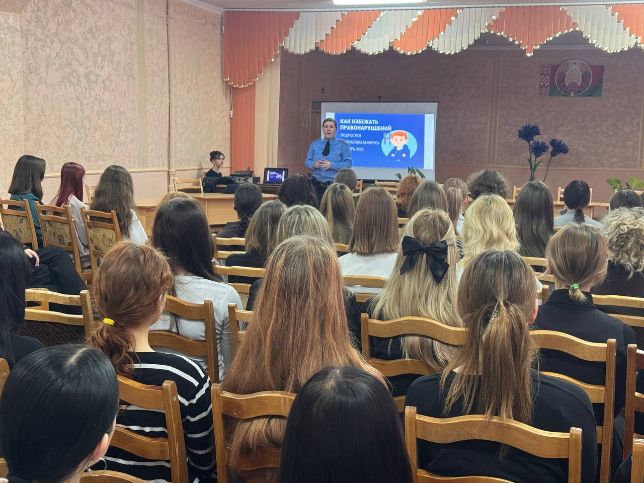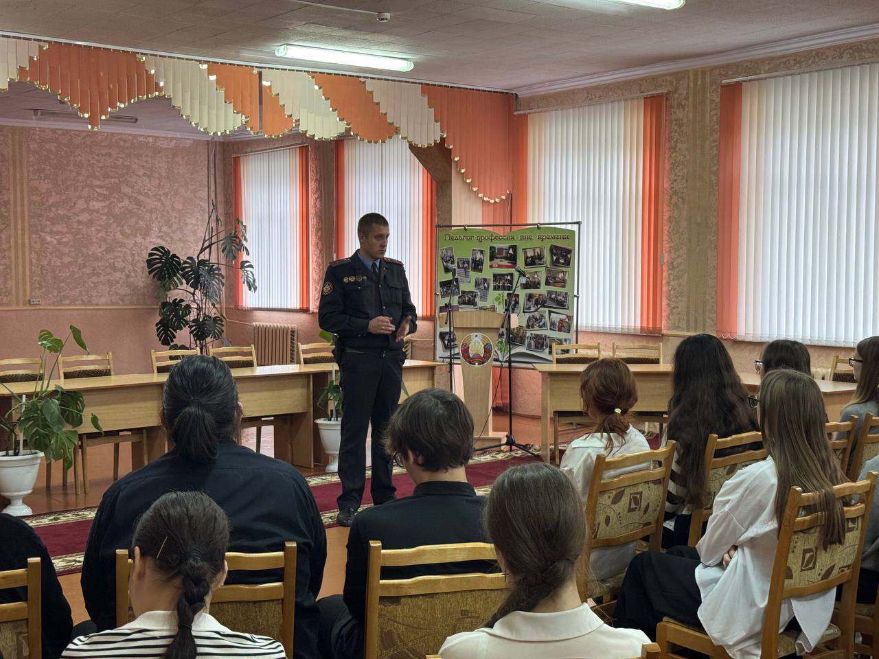 В целях профилактики правонарушений и повышения уровня правовой грамотности у учащейся молодежи 4 октября 2025 года прошла встреча участкового инспектора ИДН Речицкого РОВД Бода Ирины Николаевны с учащимися первого курса. В ходе проведения встречи были освящены темы, касающиеся мер уголовной и административной ответственности за совершение правонарушений и преступлений против общественного порядка и правонарушений, связанных с распитием алкогольных, слабоалкогольных напитков и пива, потребление, сбыт наркотических средств или психотропных веществ, преступлений в сфере высоких технологий. В заключение инспектор ИДН призвала присутствующих не допускать правонарушений и быть законопослушными гражданами. (Фотоотчёт) |